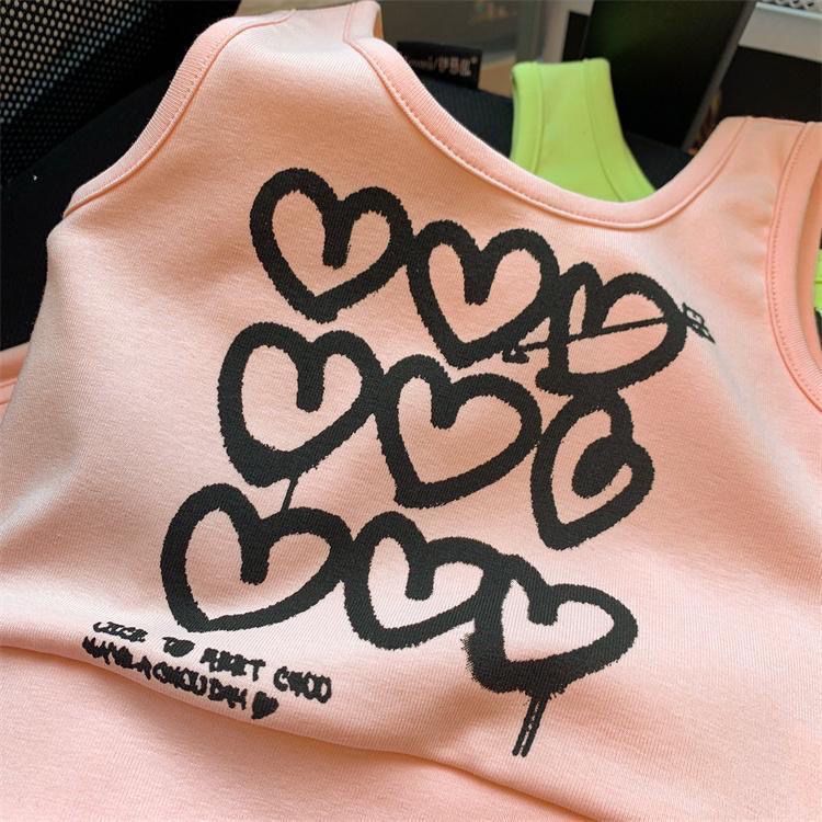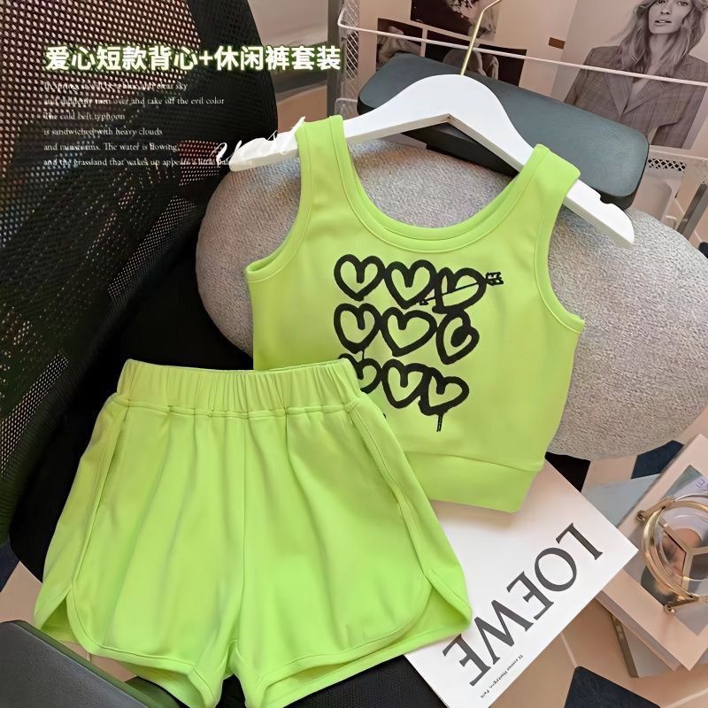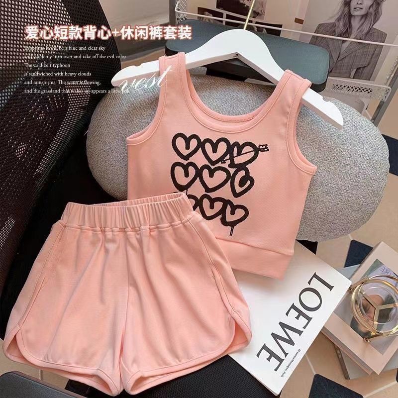 소녀면 민소매 세트 2024 여름 새 캐주얼 걸스 스타일라인 어린이 반바지 조끼 투피스 세트스토어 가기