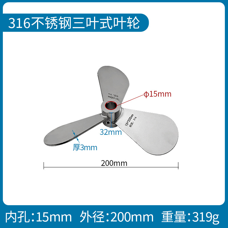 • 316 스테인레스 스틸 3 블레이드 임펠러 Φ15*200mm