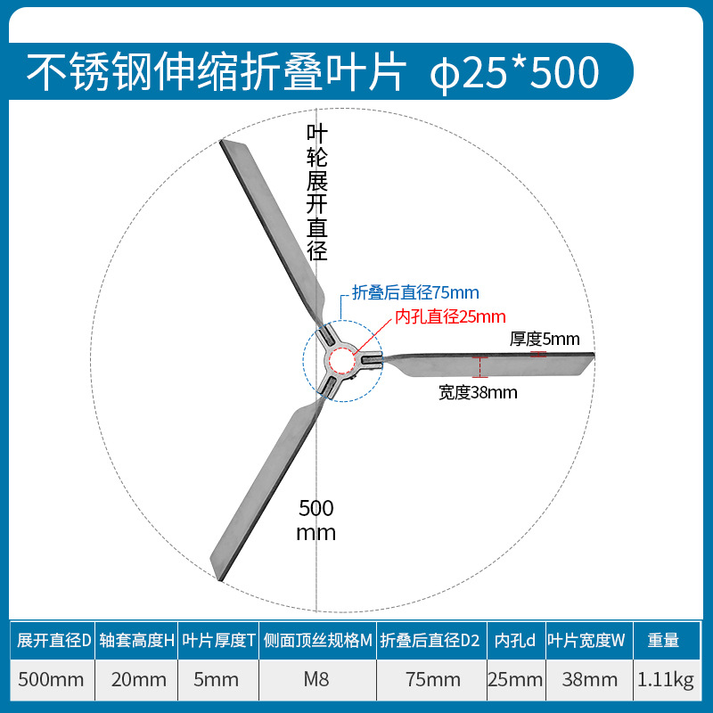 • 스테인레스 스틸 접이식 임펠러 Φ25*500mm
