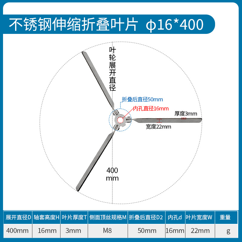 • 스테인레스 스틸 접이식 임펠러 Φ16*400mm