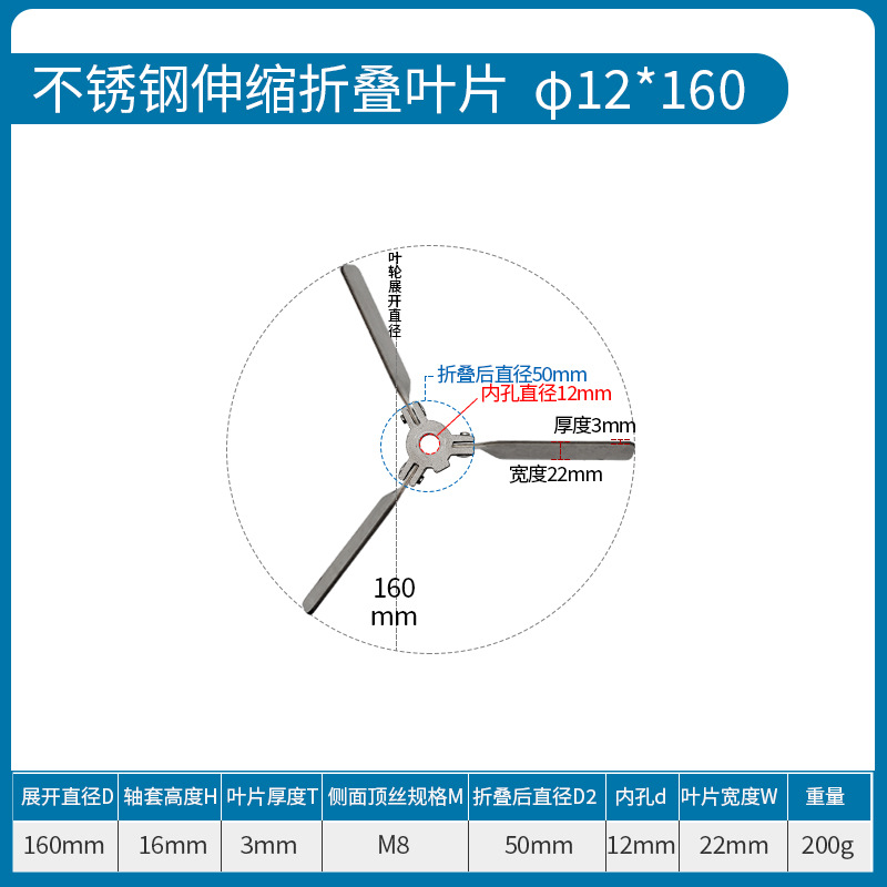 • 스테인레스 스틸 접이식 임펠러 Φ12*160mm