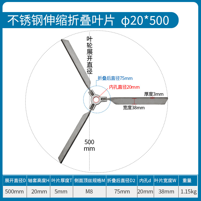 • 스테인레스 스틸 접이식 임펠러 Φ20*500mm