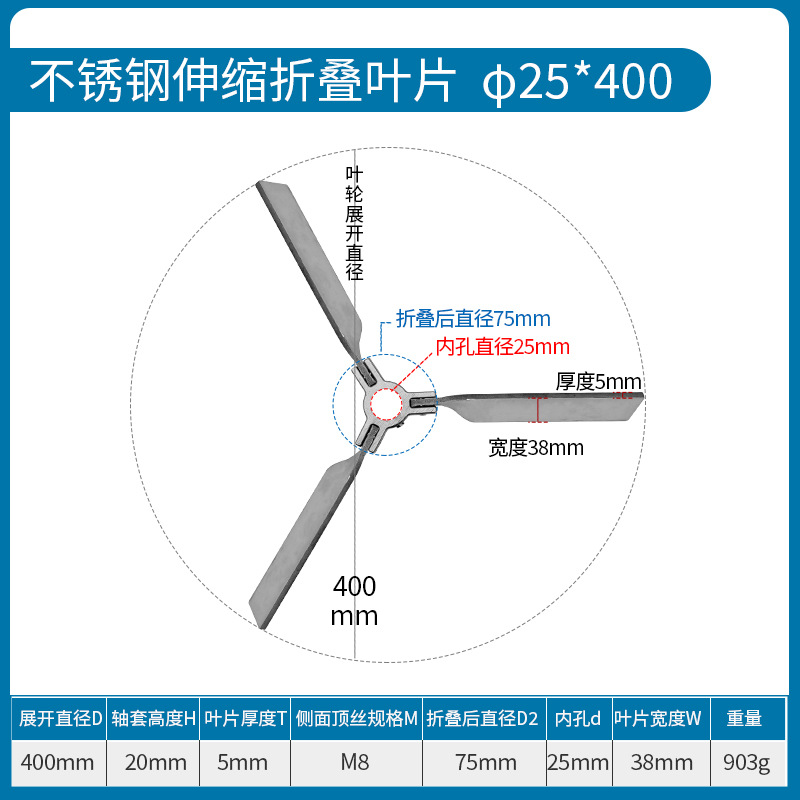 • 스테인레스 스틸 접이식 임펠러 Φ25*400mm