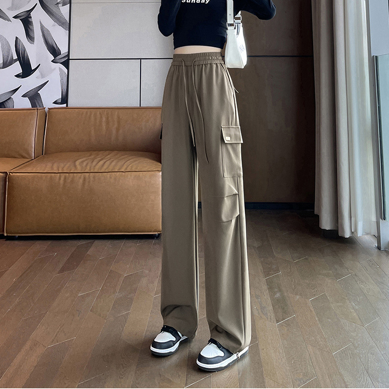빈티지 바지 여성 2024 년 봄과 가을 새로운 높은 허리 발가락 Harlan 바지 느슨한 넓은 다리 캐주얼 스트레이트 바지스토어 가기