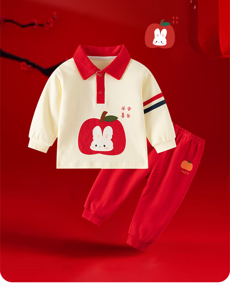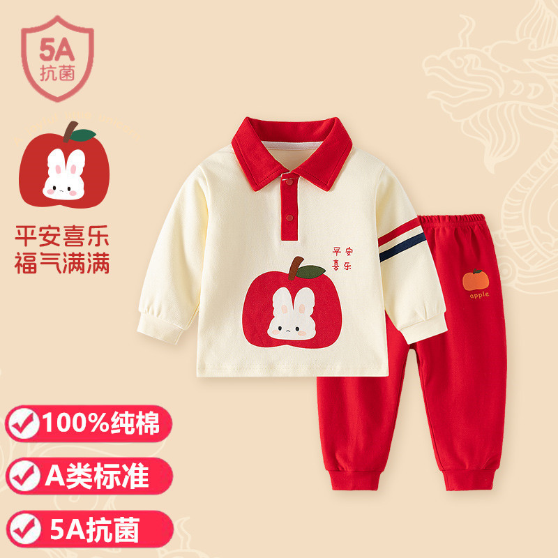어린이 소년의 봄과 가을 세트 새 아기 소녀 신년 홈 축제 옷 스웨트셔츠 면 아기 카테고리 A