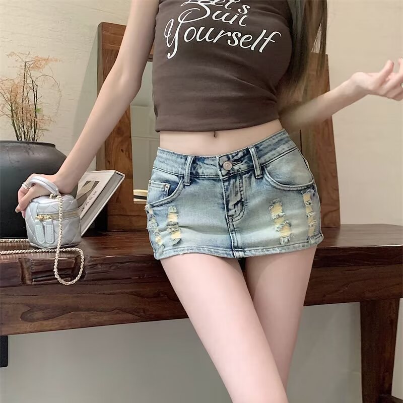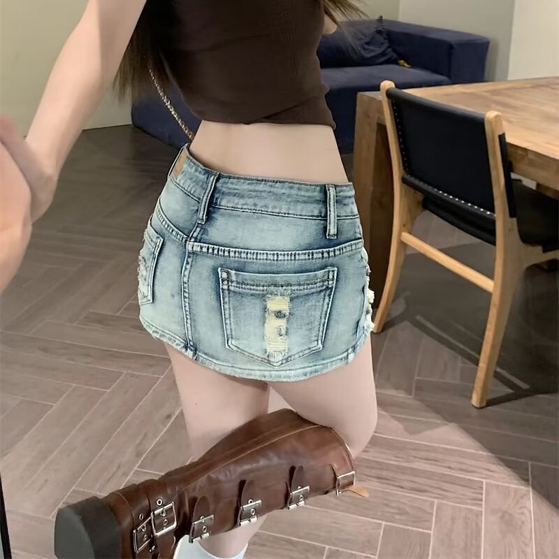 유럽과 미국의 Y2K 스파이스 걸스 미니 스커트 여성 여름 엉덩이 데님 반바지 낮은 허리 섹시한 A-라인 힙합 스커트 트렌디스토어 가기