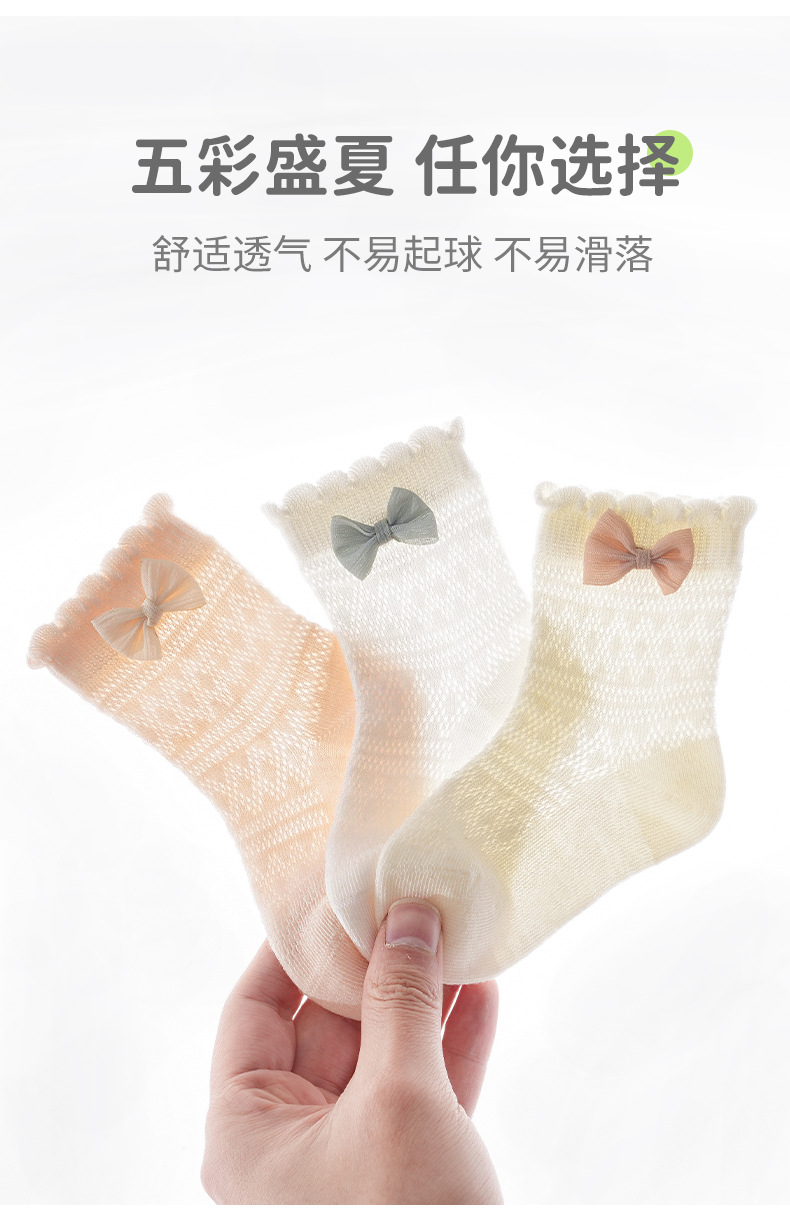 엄선된 3켤레 세트 아동 양말, 코마사 면 여아 양말, 아기 리본 면 양말, 메쉬 중목 양말 A급스토어 가기