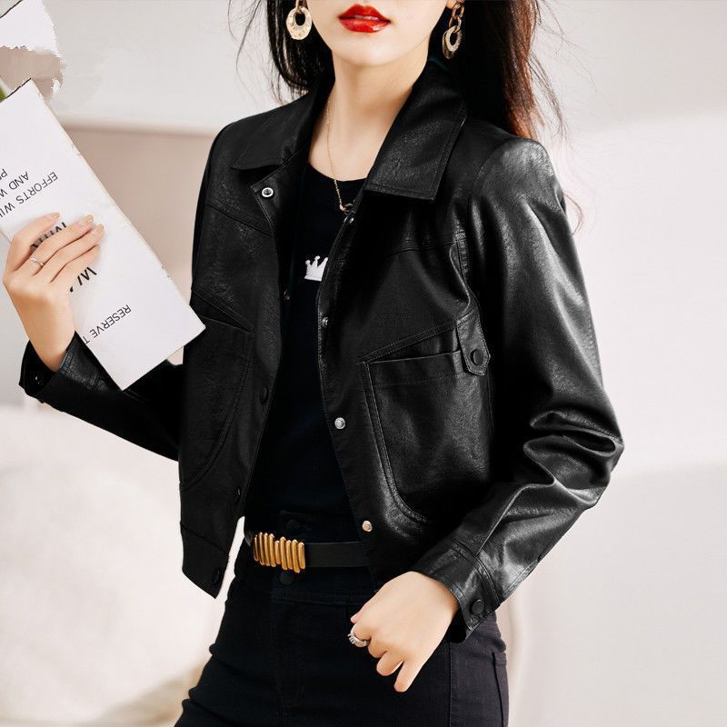 플러스 사이즈 여성 코트 짧은 2024 봄과 가을 새로운 도착 유행 폭발 이른 봄 오토바이 재킷 탑스토어 가기