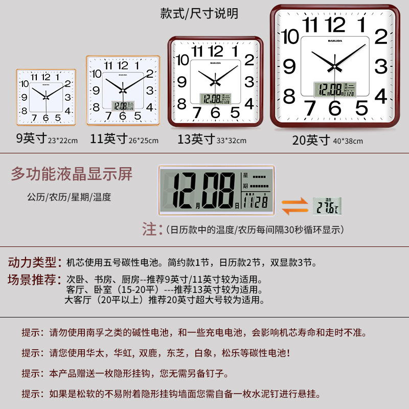 가정 광장 벽 시계 거실 시계 현대 시계 벽 교수형 간단한 패션 전자 달력 시계 교수형 시계 석영 시계