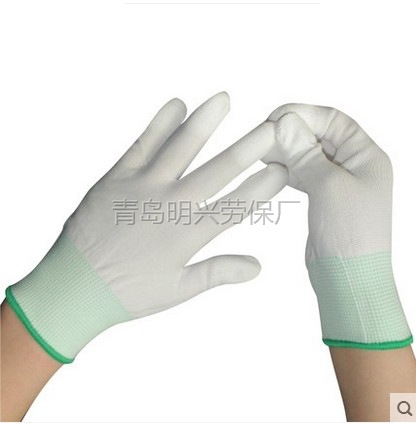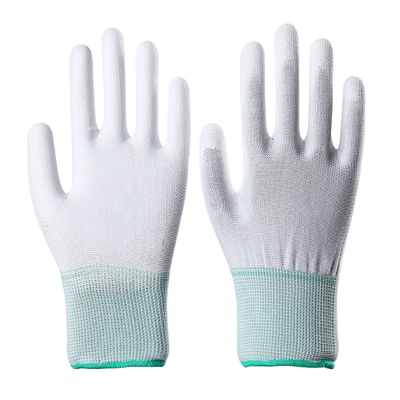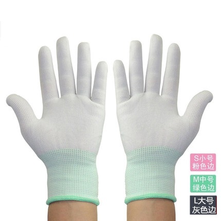 접착제 침지 접착제 손바닥 전자 먼지가없는 정전기 방지 노동 장갑으로 코팅 된 얇은 흰색 나일론 PU 손가락 코팅 장갑 36 쌍