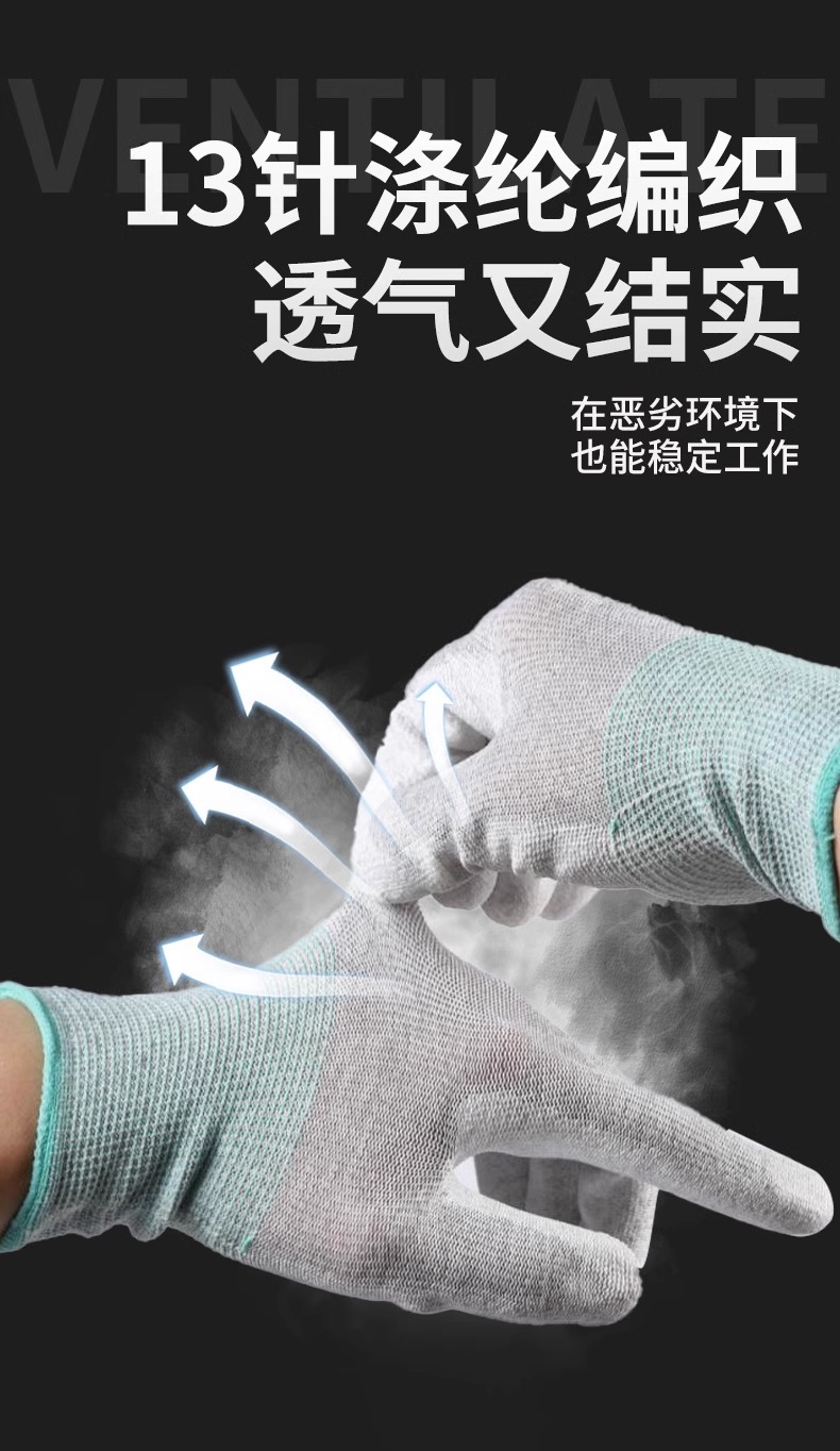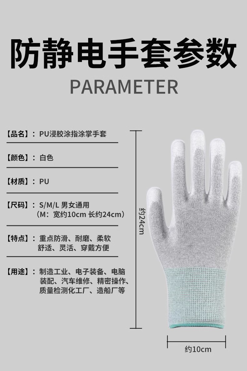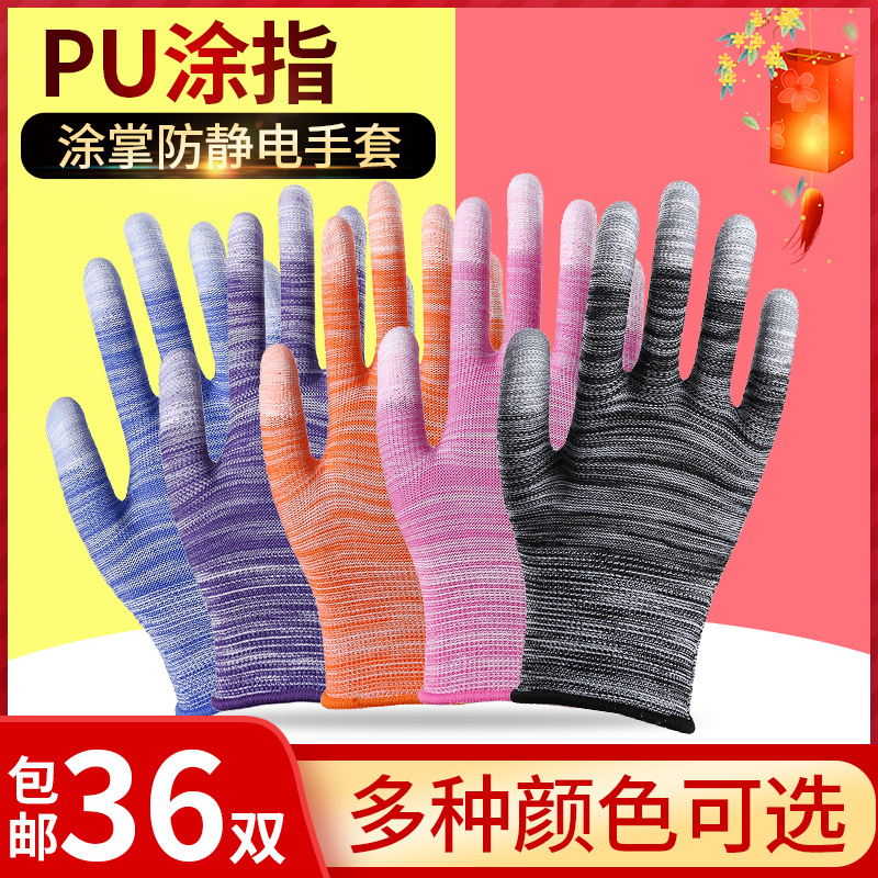 접착제 침지 접착제 손바닥 전자 먼지가없는 정전기 방지 노동 장갑으로 코팅 된 얇은 흰색 나일론 PU 손가락 코팅 장갑 36 쌍스토어 가기