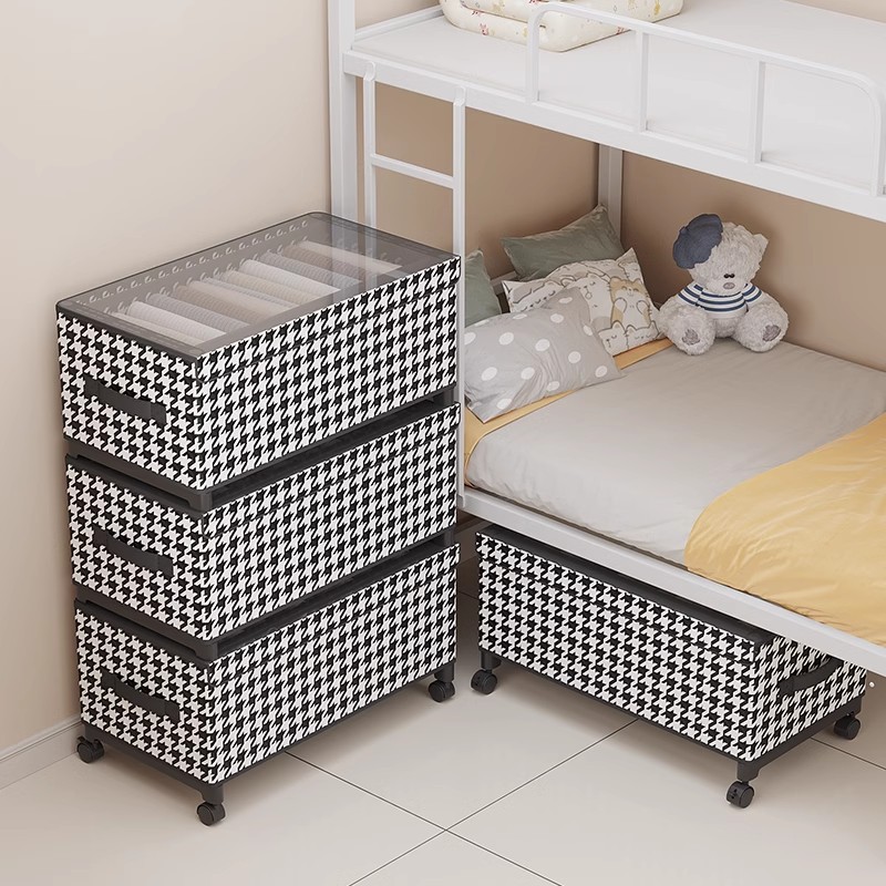 침대 옷 아래 바지 보관 상자 기숙사 바퀴 방진 가정용 마감재 투명한 옷 보관 상자스토어 가기