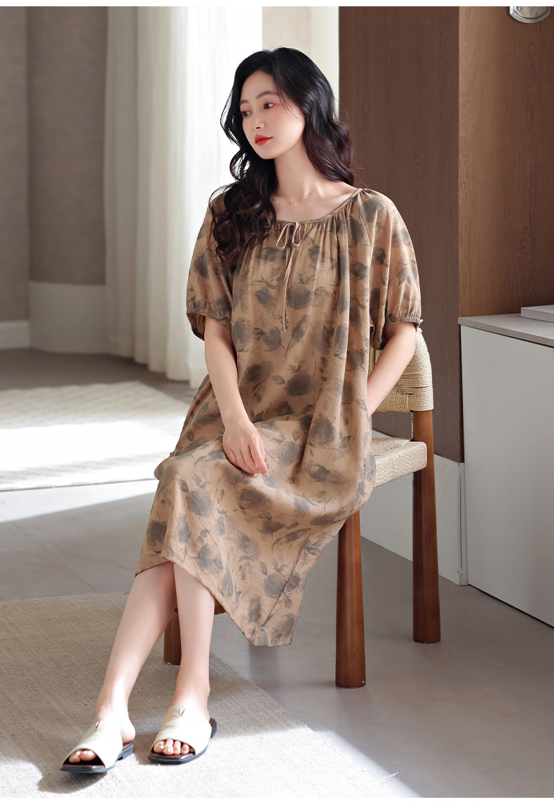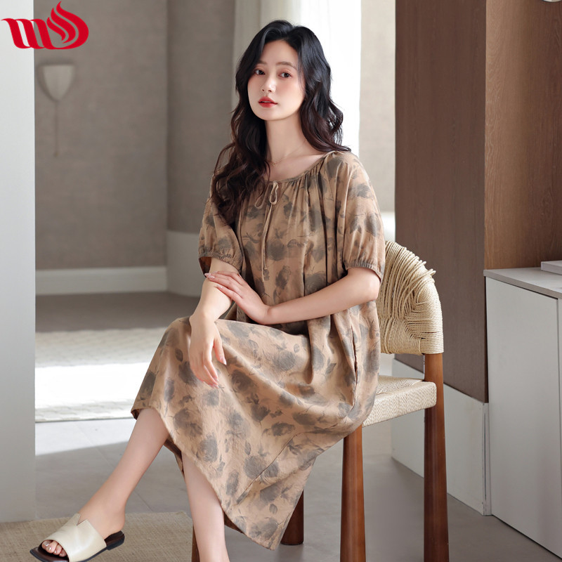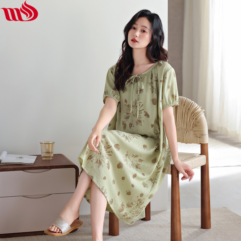Mulong 귀족 가족, 순수 면화 새로운 도착 나이트 드레스 여성 여름 순면 짧은 소매 순수 면 얇은 느슨한 원피스 임산부스토어 가기