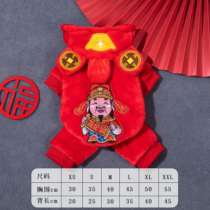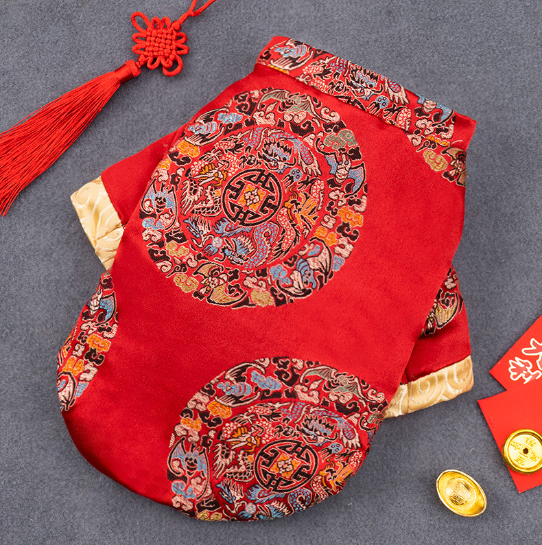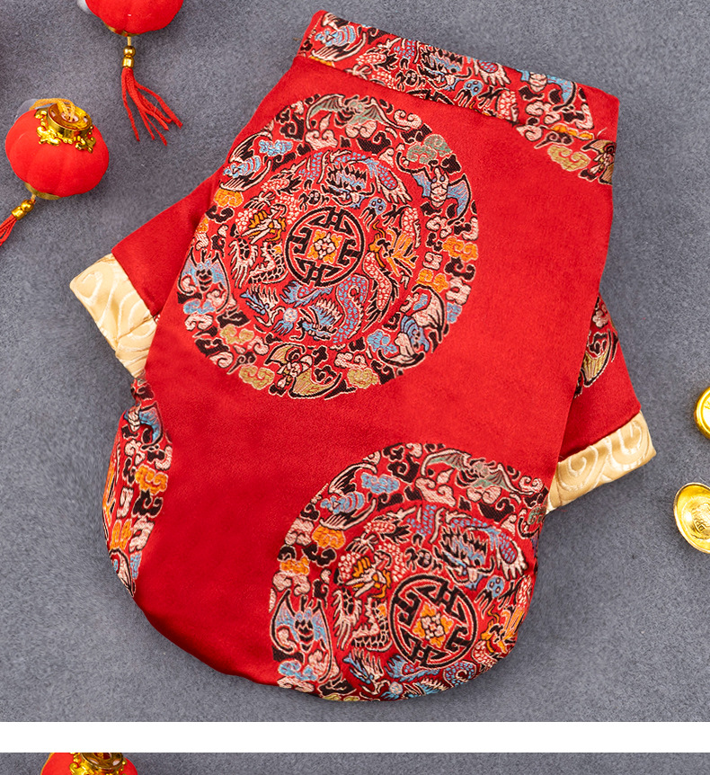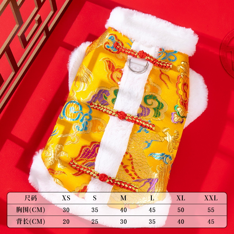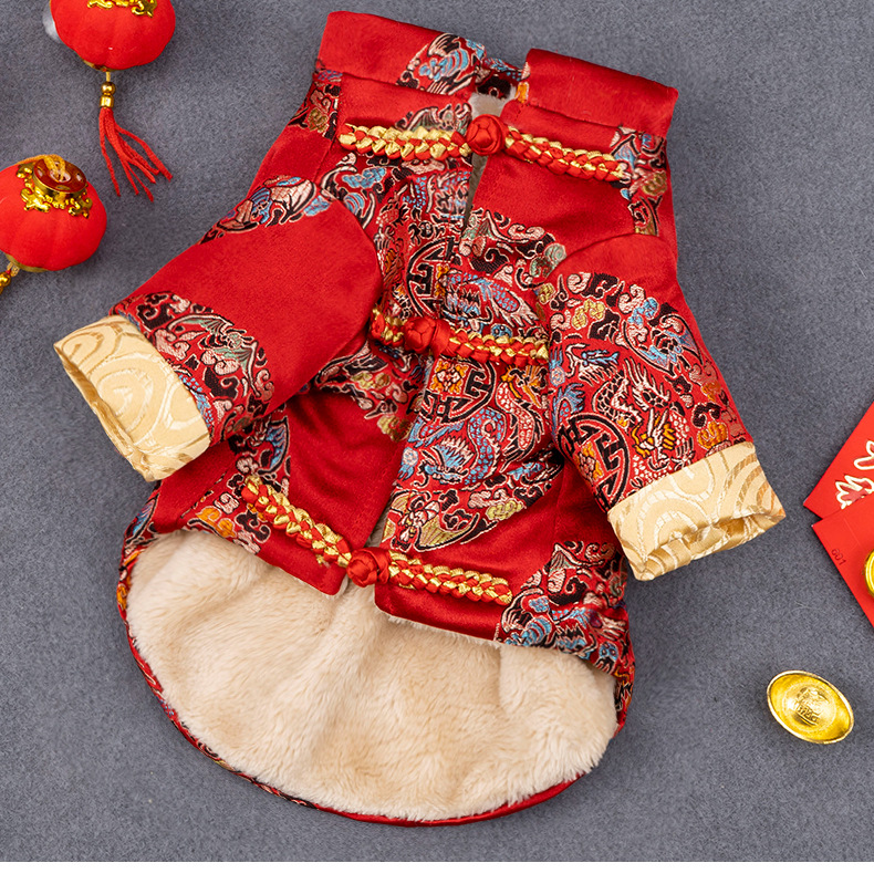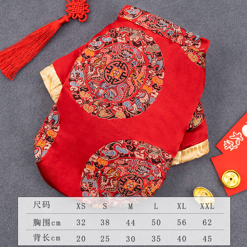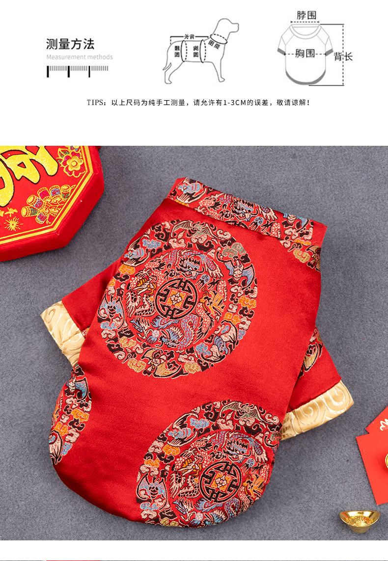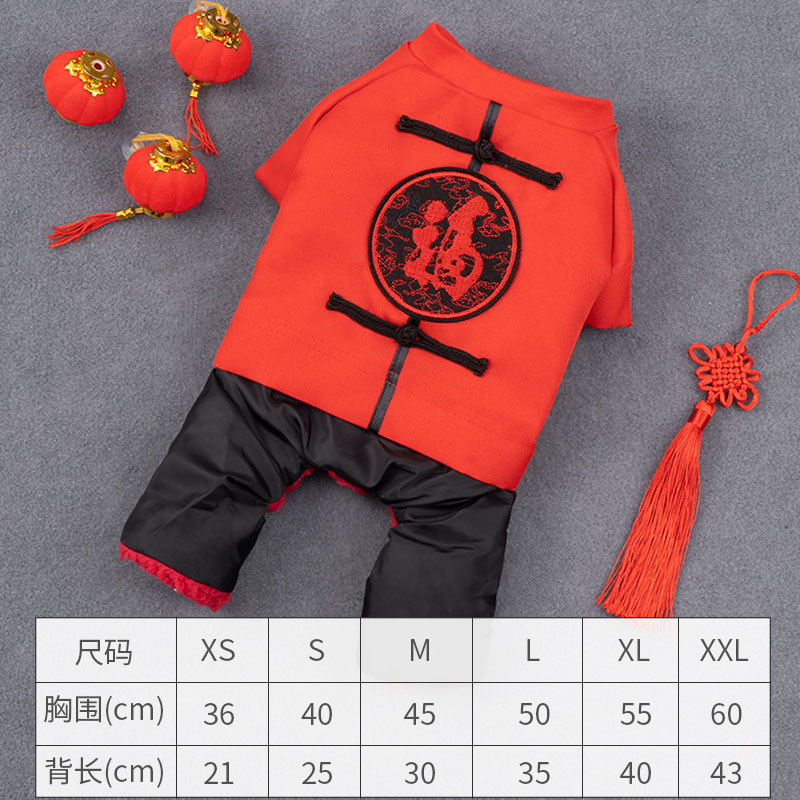 고양이 옷 한푸 개 당나라 옷 새해 축제 겨울 옷 작은 개 테디 보우미 곰 새해 애완 동물 옷스토어 가기
