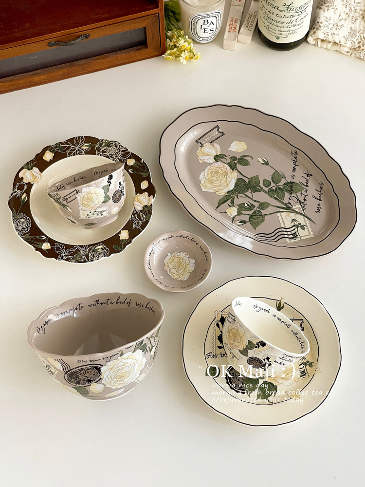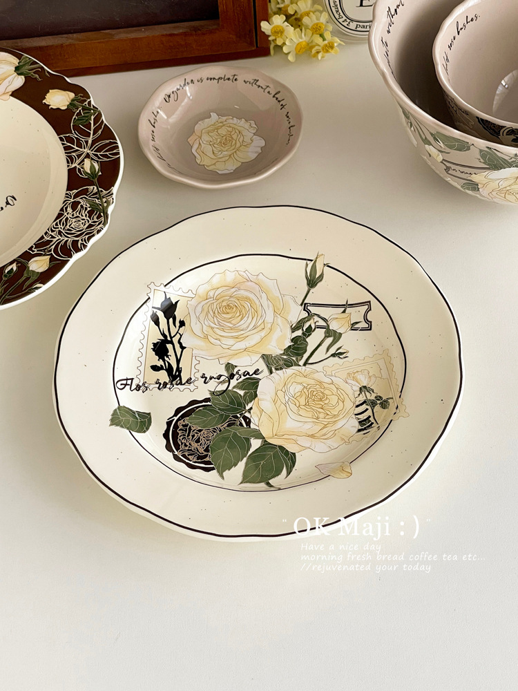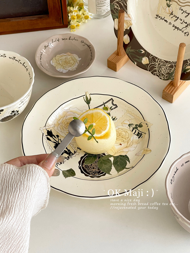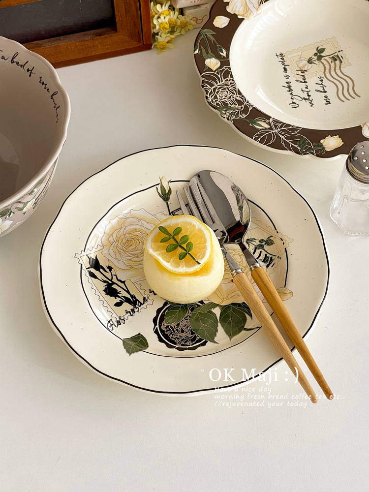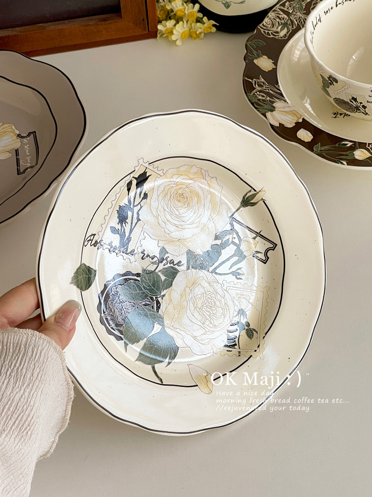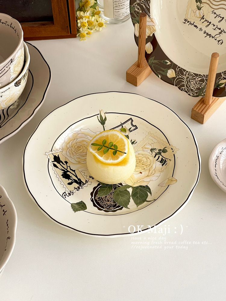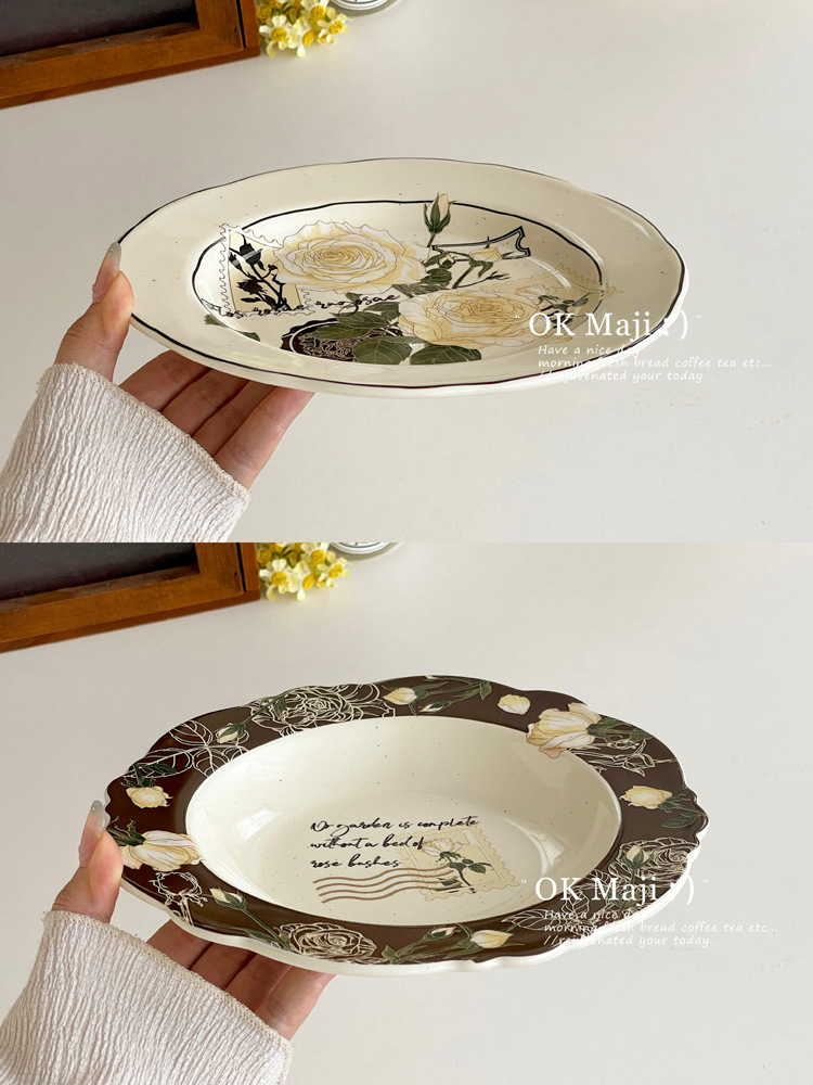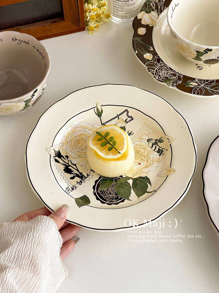 프랑스 빈티지 디너 플레이트 케이크 플레이트 절묘한 세라믹 레이스 플레이트 접시 가정용 서양 푸드 플레이트 파그 디저트 플레이트스토어 가기