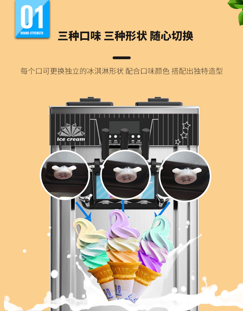 • 268 수직 대형 3헤드 아이스크림 기계