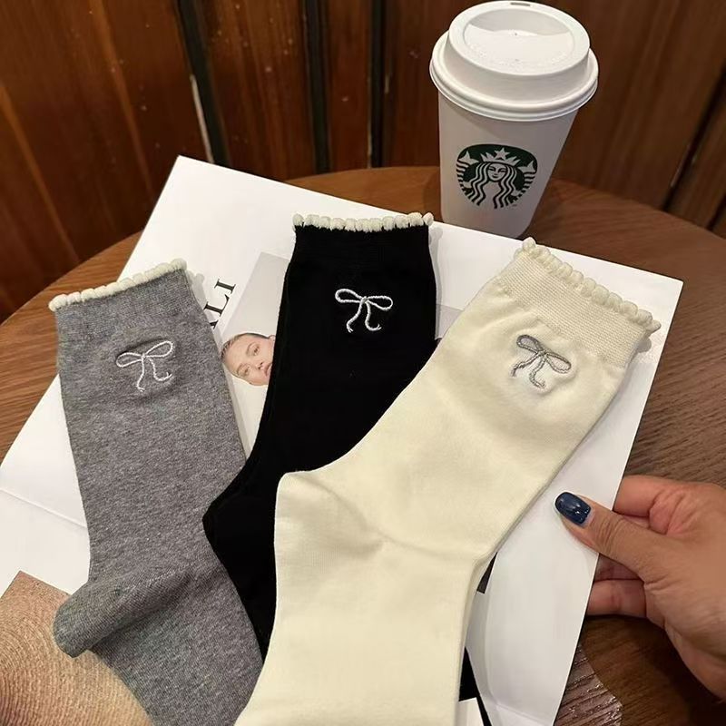 통기성 버블 입 실버 리본 여성 여름 다목적 얇은 중반 송아지 양말 땀 흡수 파일 양말 스포츠스토어 가기