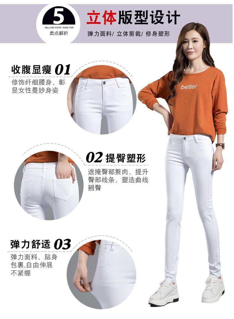 화이트 청바지 여성의 봄과 가을 새로운 한국 스타일 여성 플러스 사이즈 슬림 핏 슬리밍 캐주얼 연필 긴 바지스토어 가기