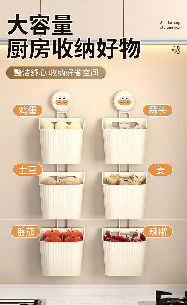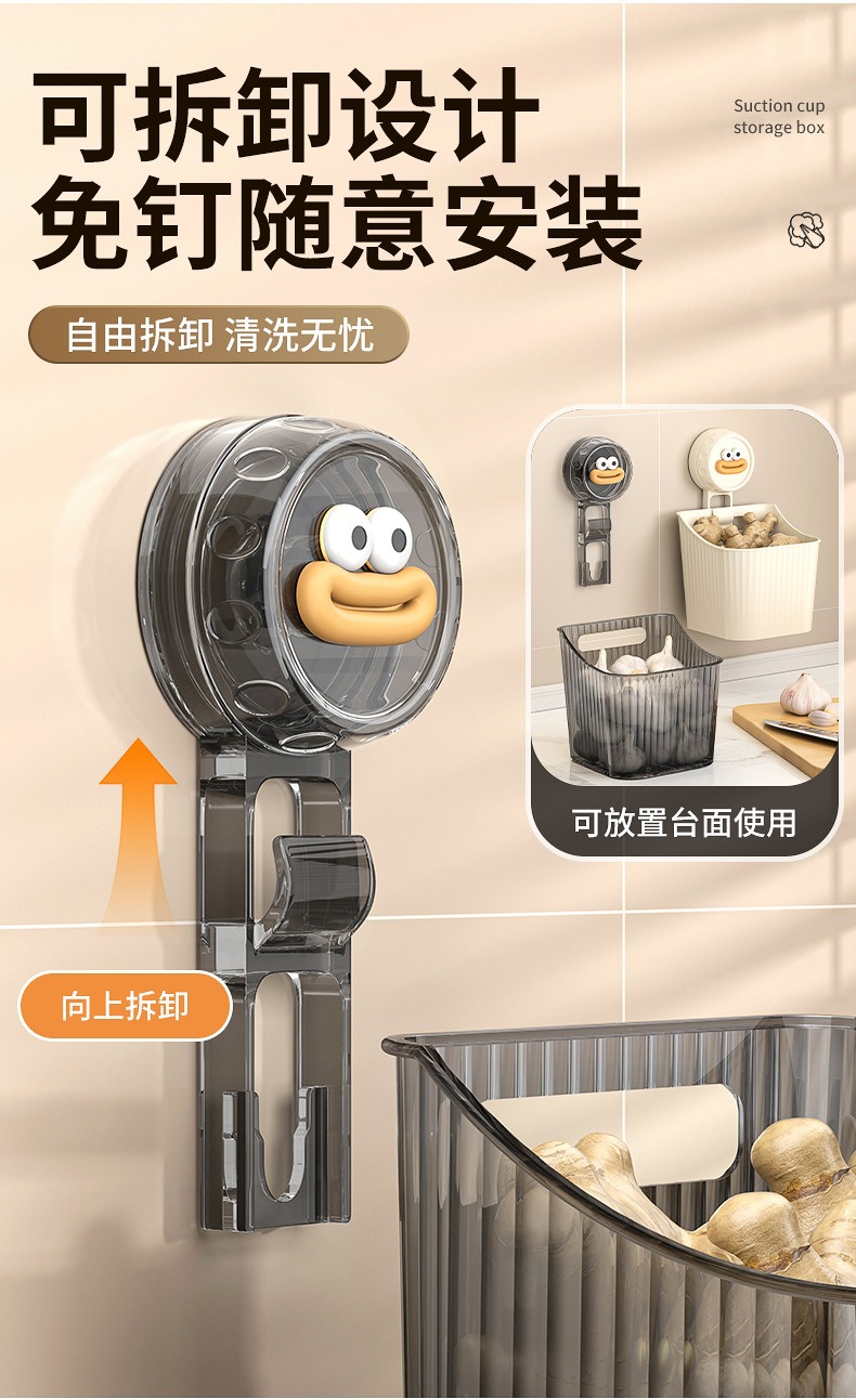 석션 컵 가마, 생강 및 마늘 저장 상자 주방 보관 랙 벽 교수형 생강 및 마늘 저장 인공물 구멍이없는 저장 바구니