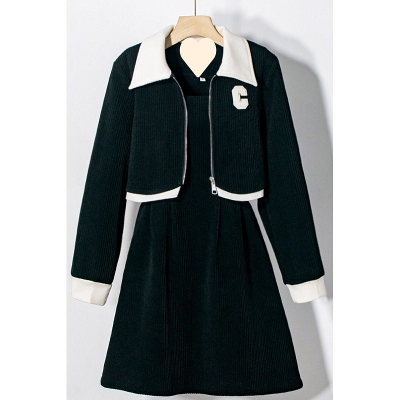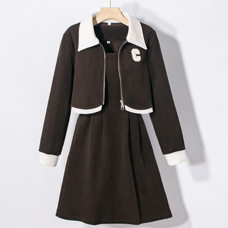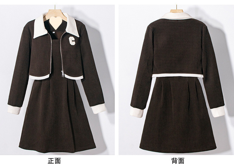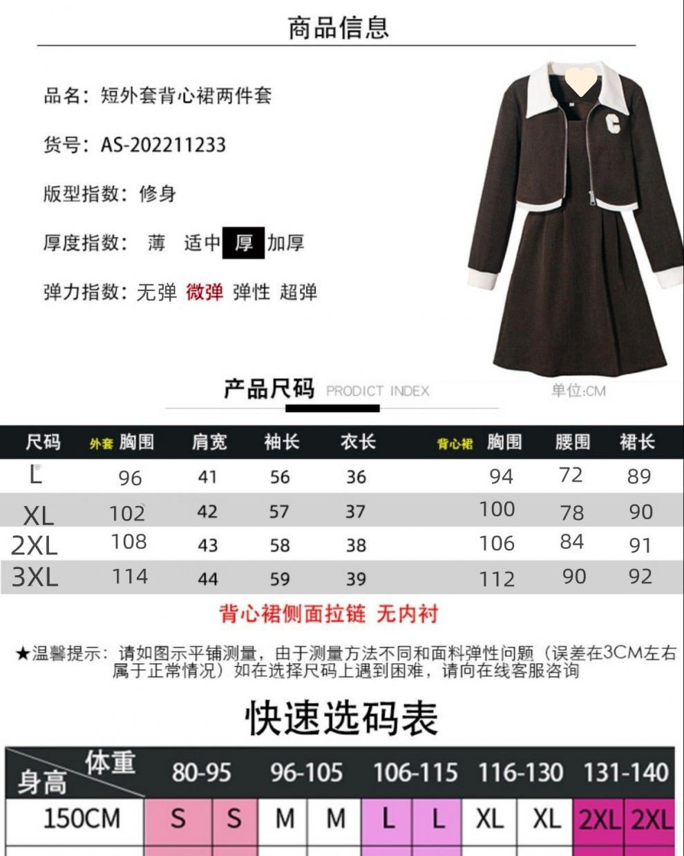플러스 사이즈 여자 원피스 세트 2024 새로운 통통녀 짧은 코트 코듀로이 조끼 스커트 투피스 세트스토어 가기
