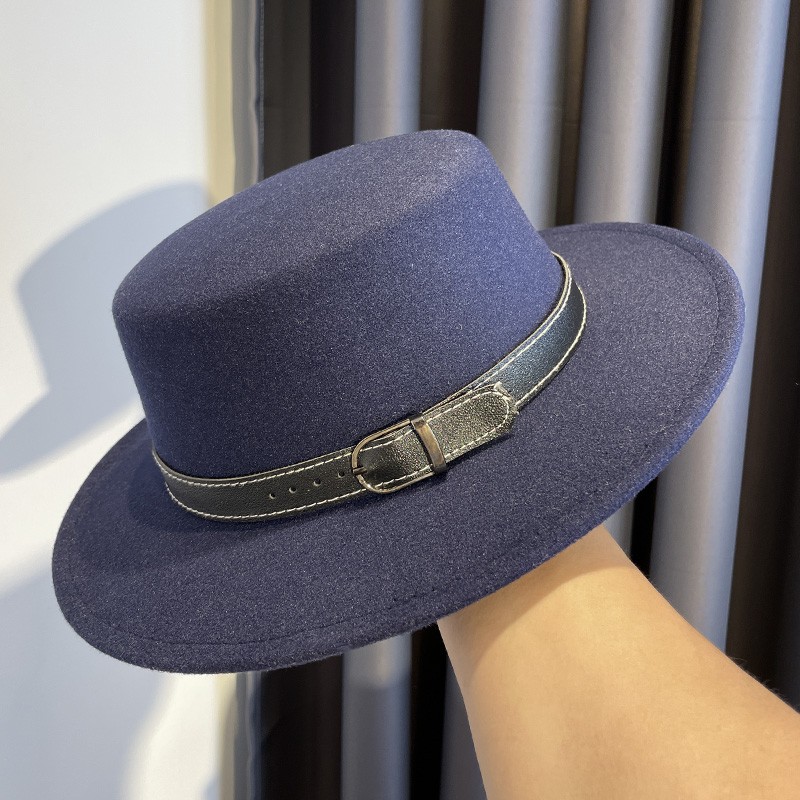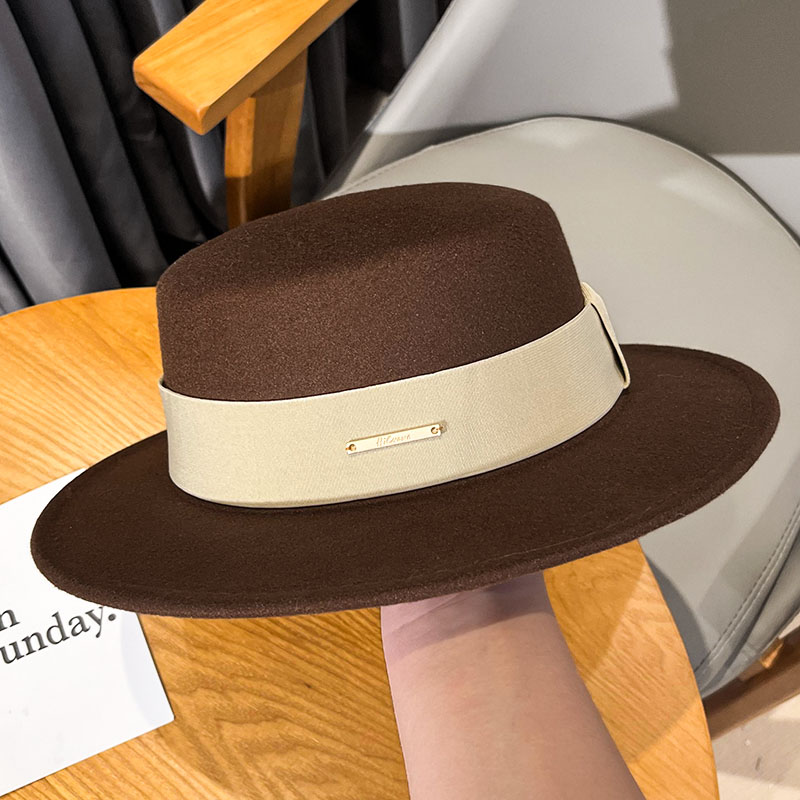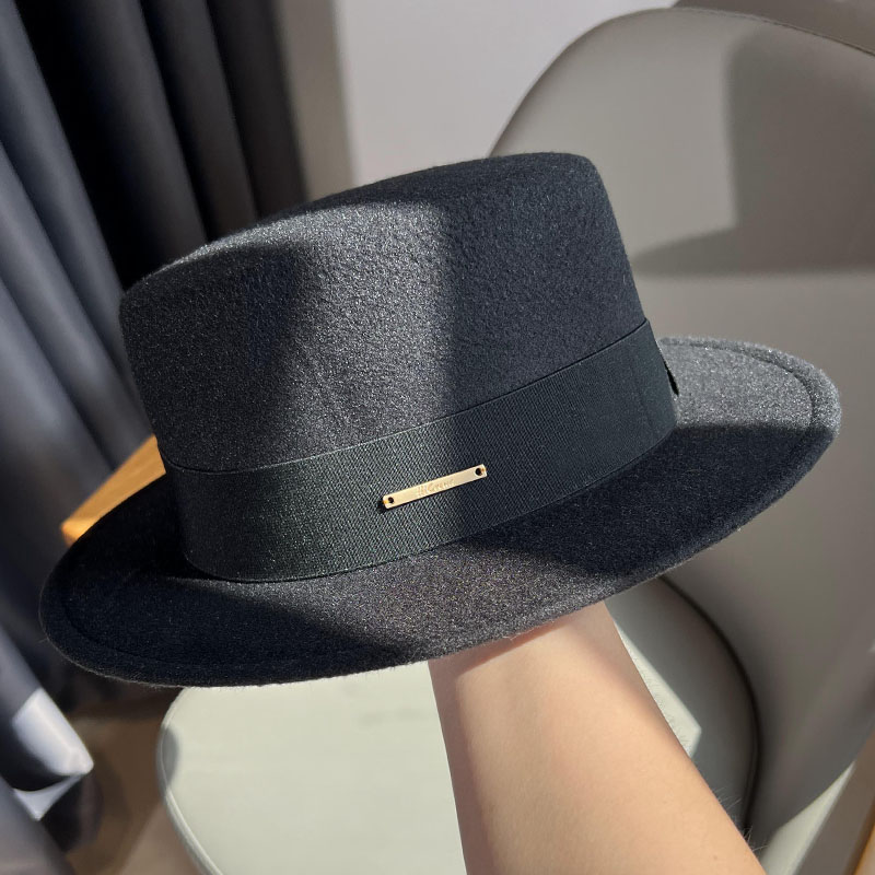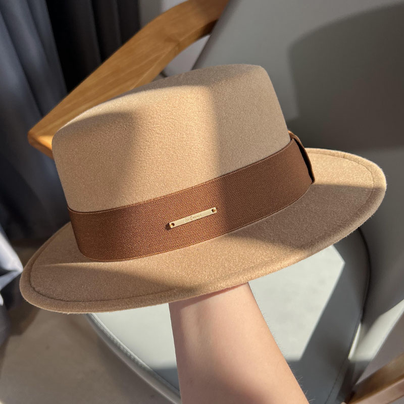 베이지 프렌치 스타일 플랫 탑 모자 여성의 2025 봄 새로운 울 영국 스타일 우아한 얼굴 작은 플랫 탑 모자 트렌디스토어 가기