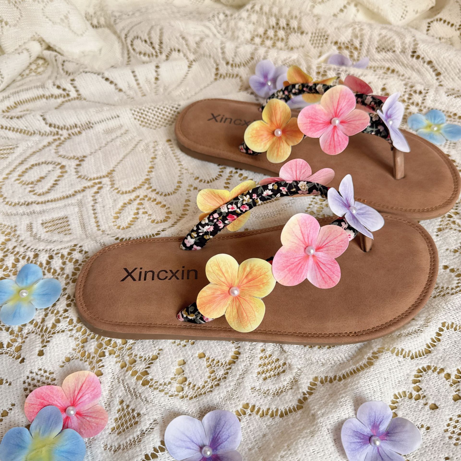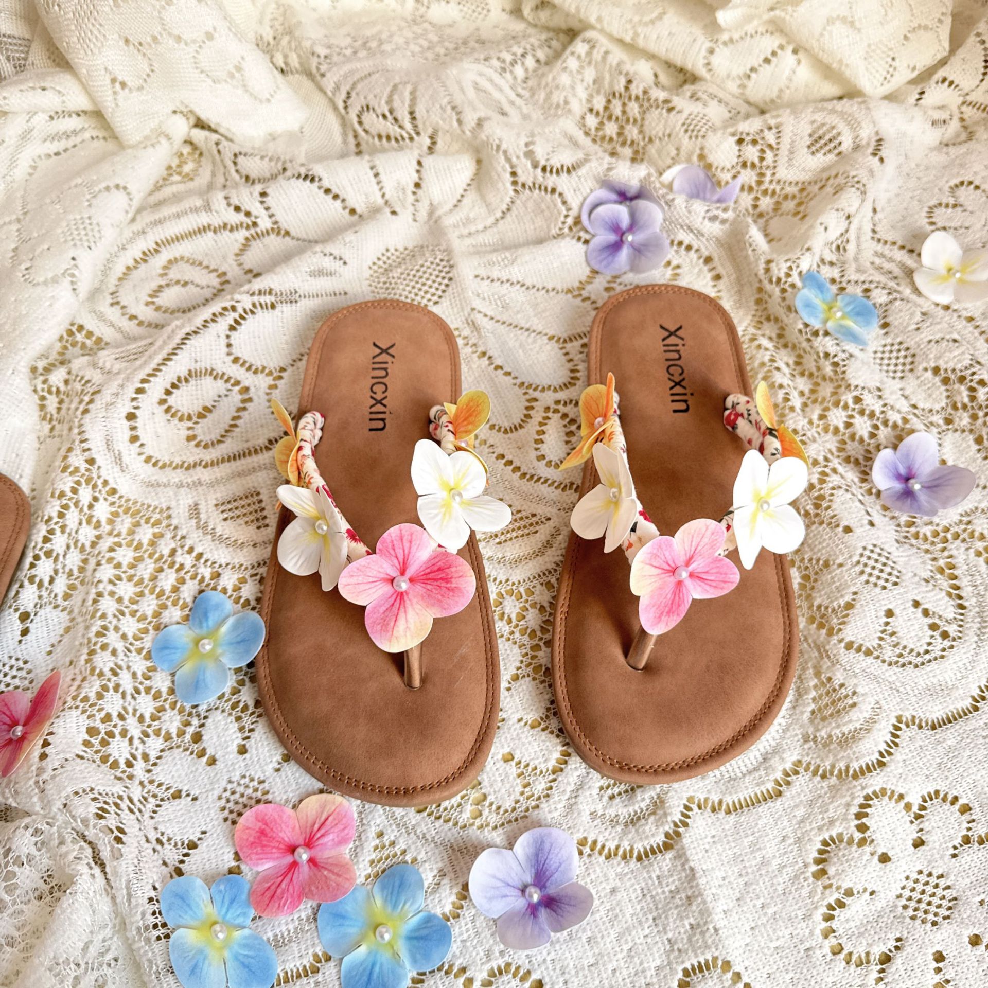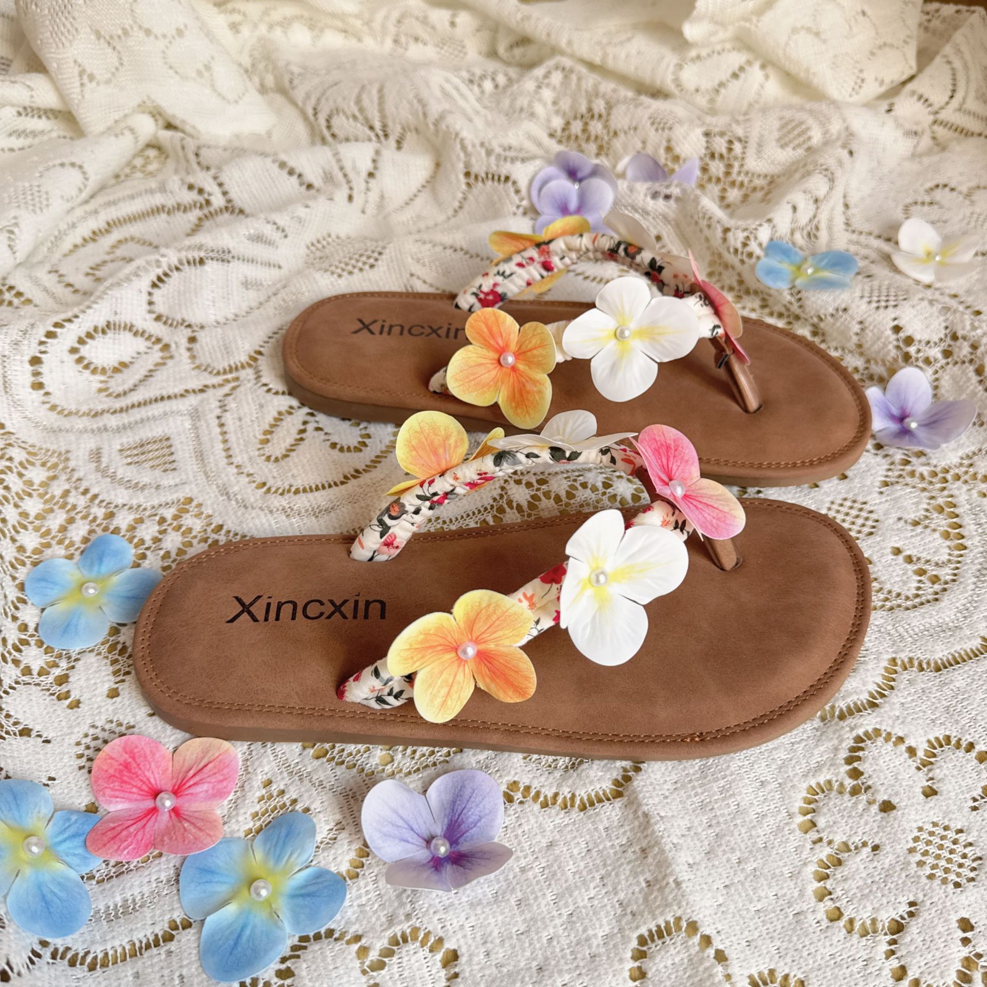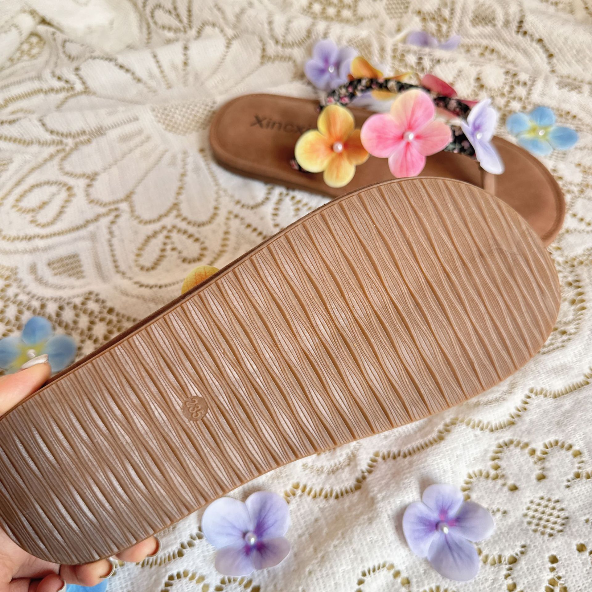 태국 스타일 휴가 슬리퍼 여성 여름 유행 의상 올 매치 시사이드 클립 다리가있는 비치 슬리퍼 꽃 플립 플롭