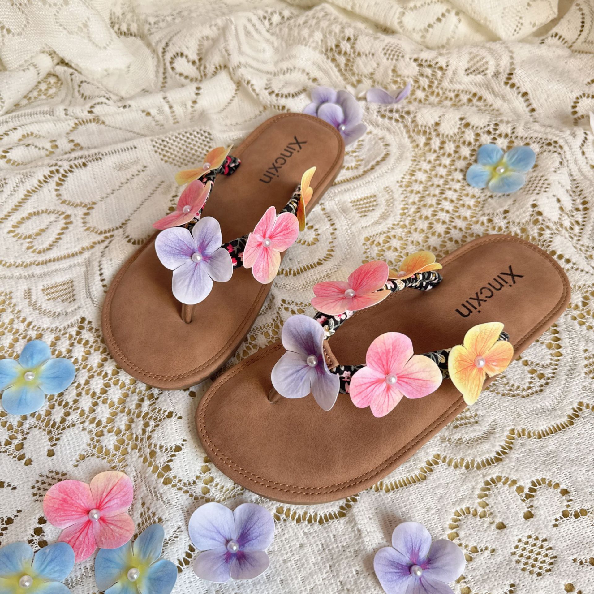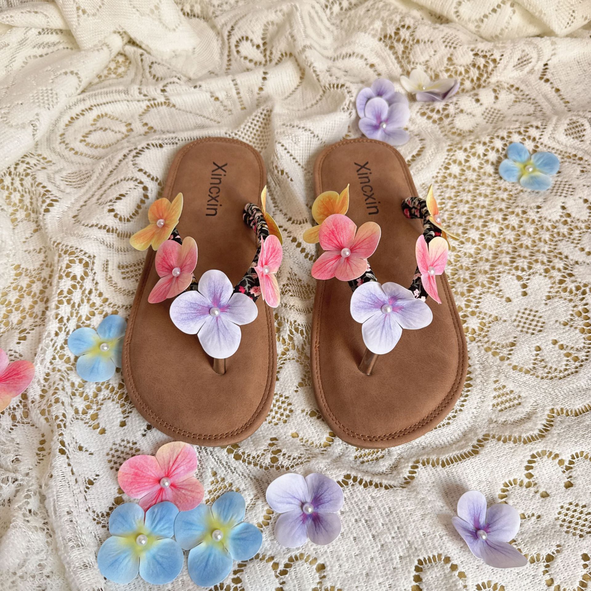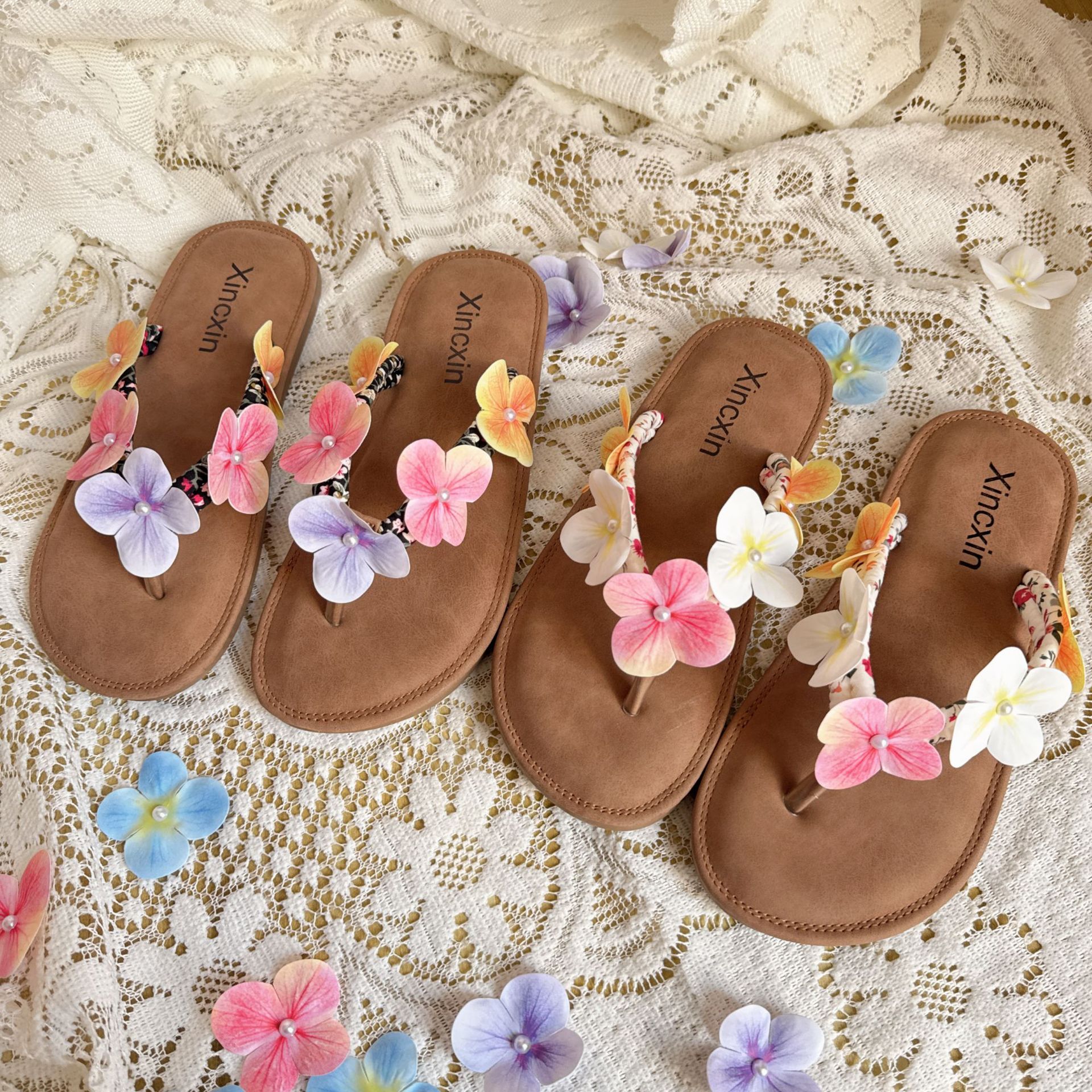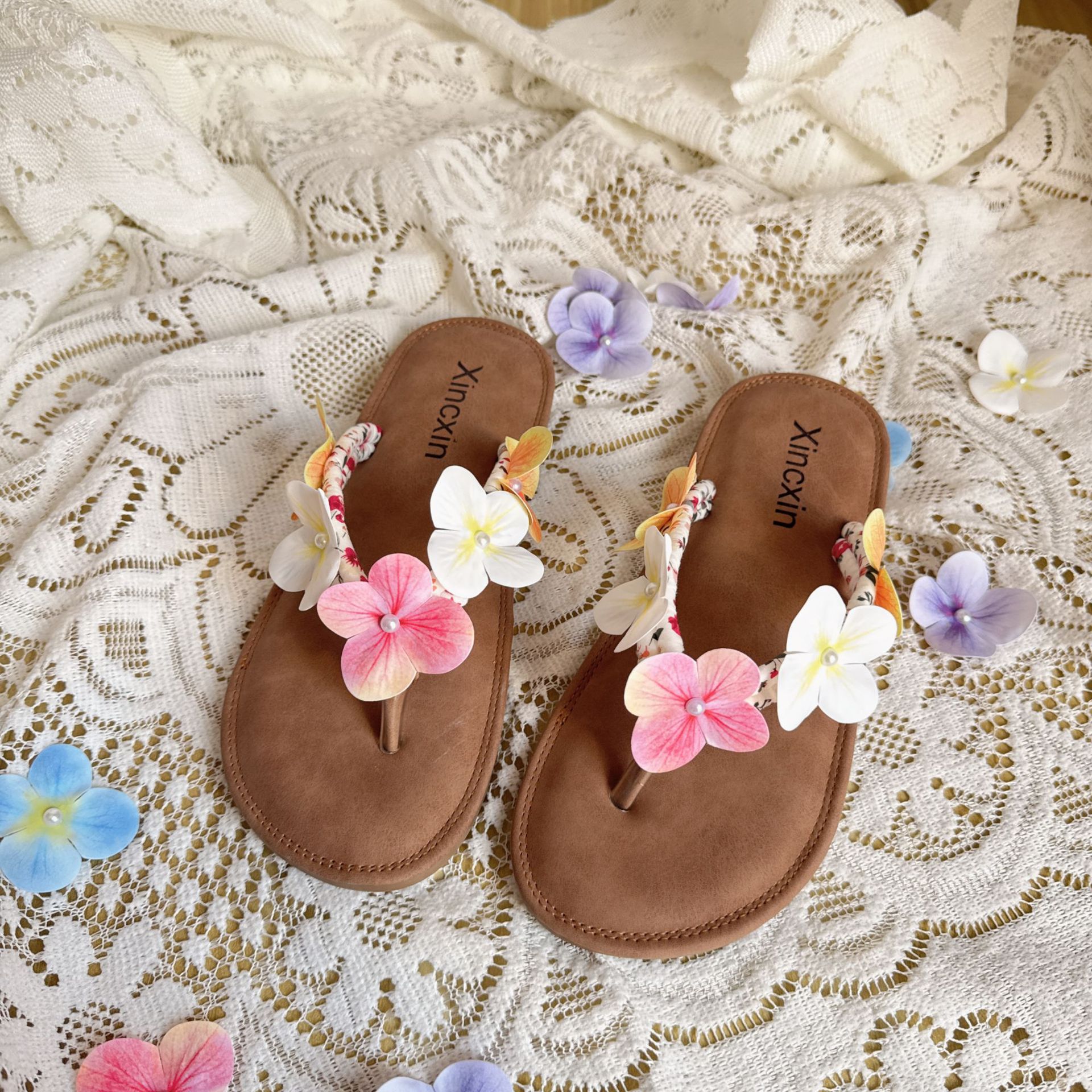 태국 스타일 휴가 슬리퍼 여성 여름 유행 의상 올 매치 시사이드 클립 다리가있는 비치 슬리퍼 꽃 플립 플롭스토어 가기