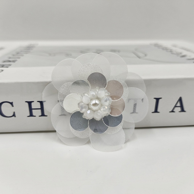 [名称]:手工多层欧根纱亮片钉珠花朵