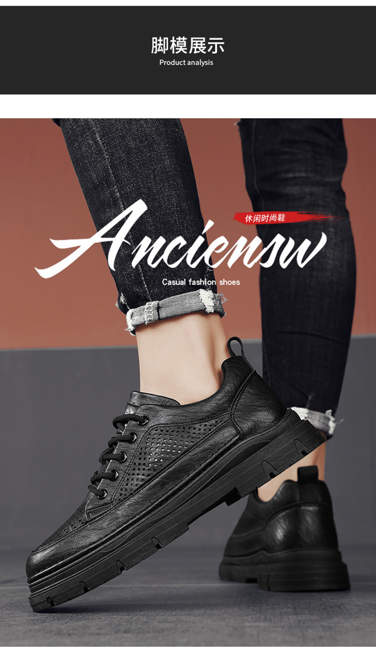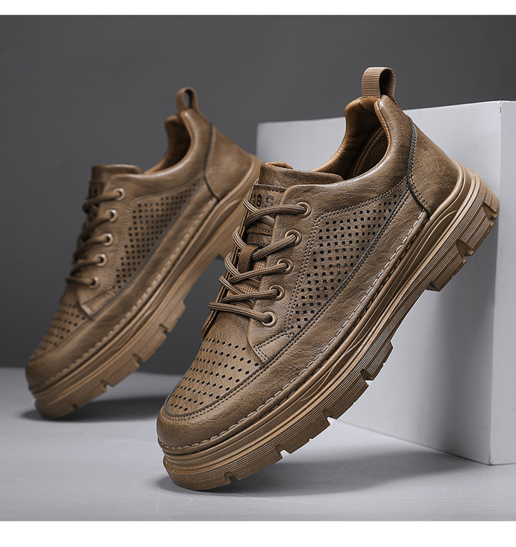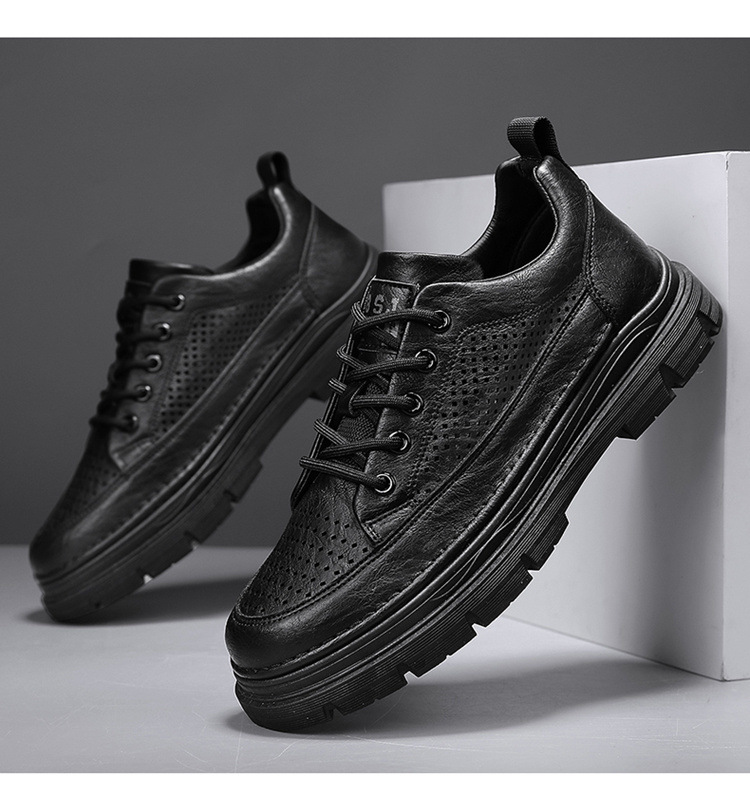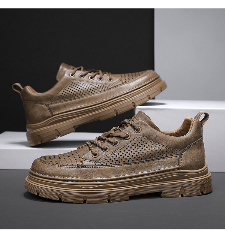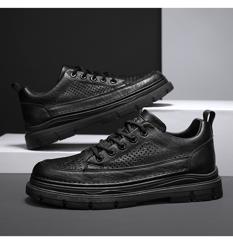 흰색 남성 신발 여름 통기성 중공 영국 스타일 비즈니스 원피스 캐주얼 가죽 신발 미끄럼 방지 작업 낮은 컷 말스토어 가기