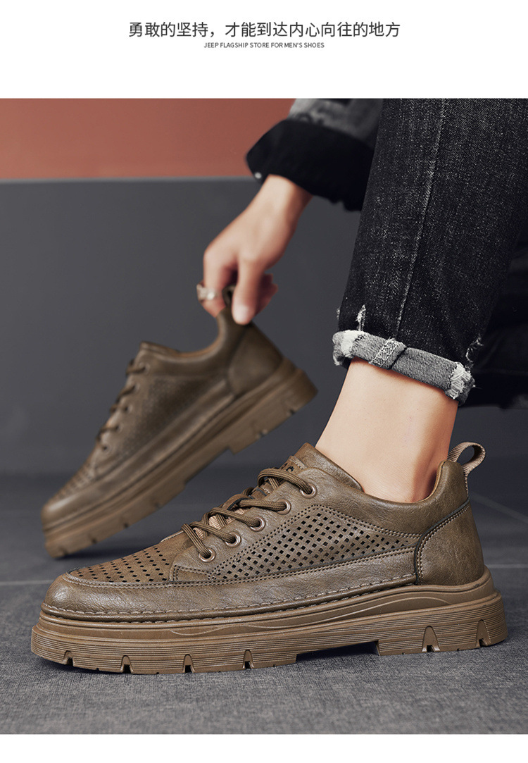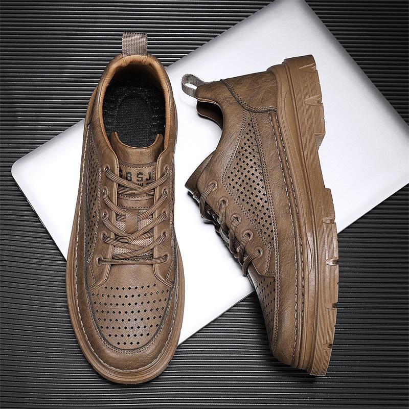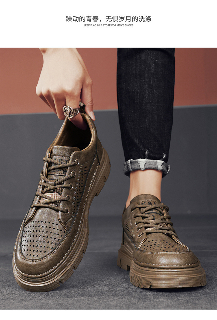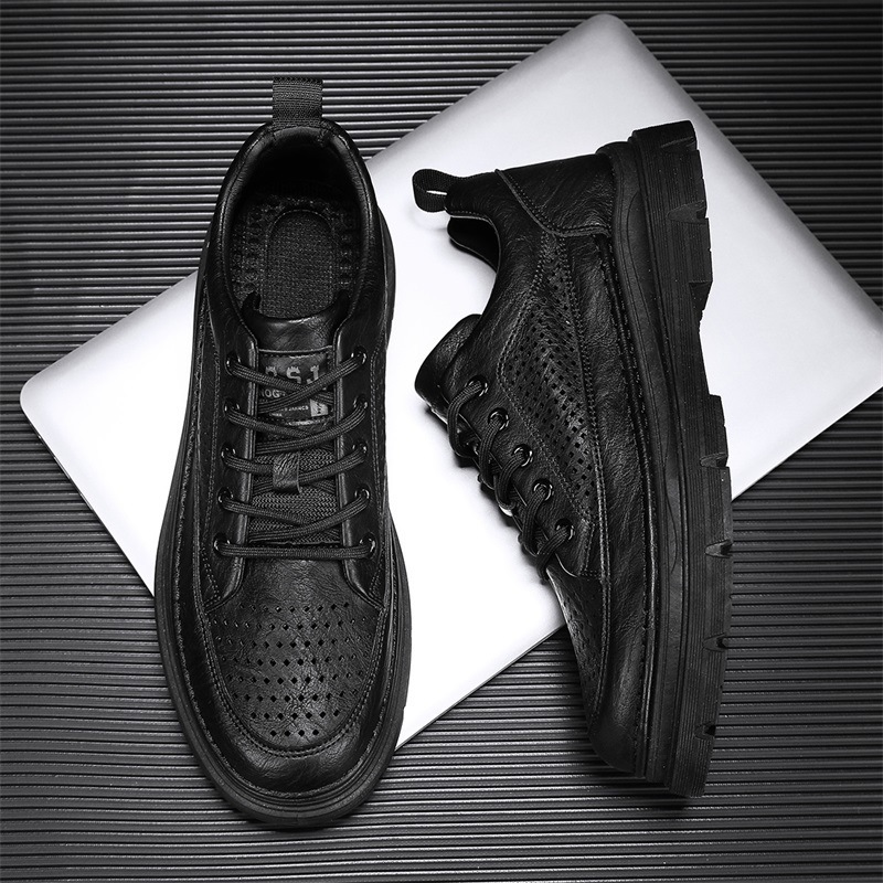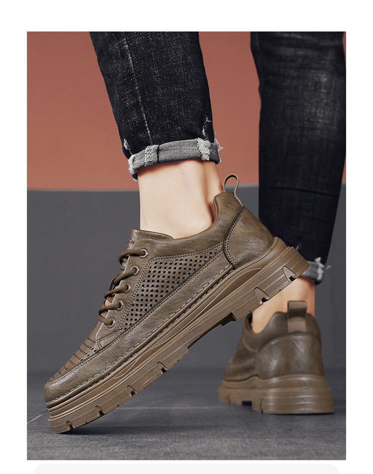 흰색 남성 신발 여름 통기성 중공 영국 스타일 비즈니스 원피스 캐주얼 가죽 신발 미끄럼 방지 작업 낮은 컷 말스토어 가기