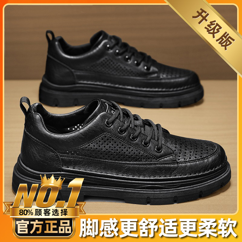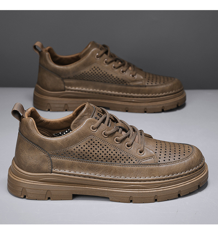 흰색 남성 신발 여름 통기성 중공 영국 스타일 비즈니스 원피스 캐주얼 가죽 신발 미끄럼 방지 작업 낮은 컷 말