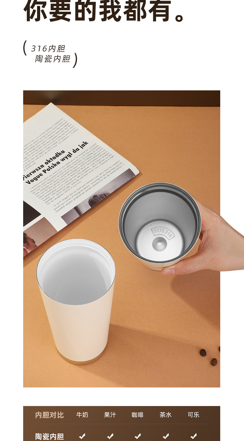 새로운 스즈키 오키드 커피 컵 두 배 음료 컵 316 스테인레스 스틸 세라믹 높은 색상 가치 보온병 컵 대용량 흡입 컵스토어 가기