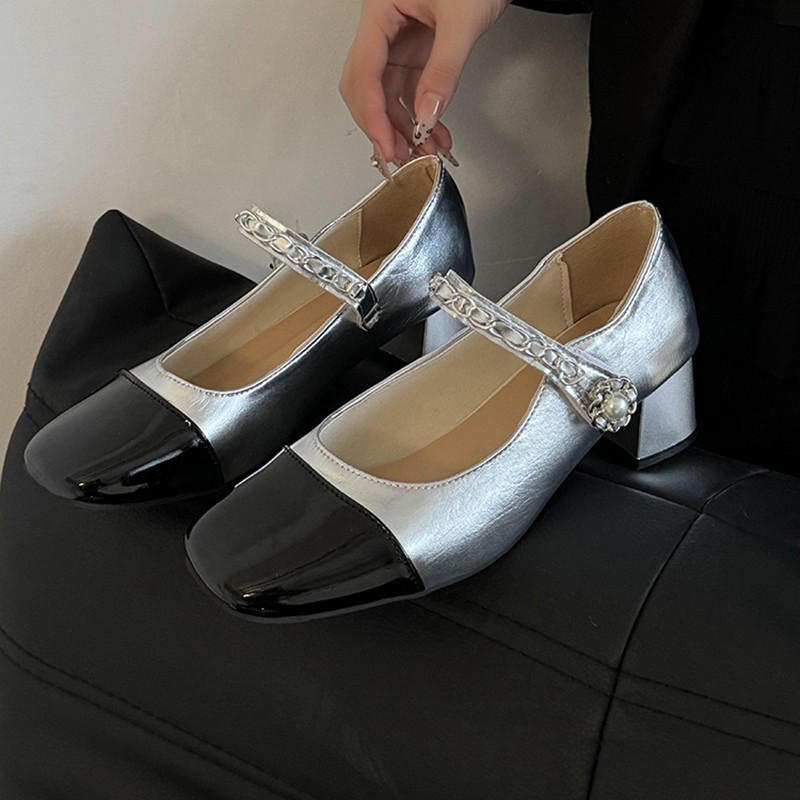여성용 방수 플랫폼 하이힐 2023 신상 누드 컬러 페이턴트 가죽 슈즈 뾰족코 얇은 굽 두꺼운 밑창 우아하고 섹시한 여성화스토어 가기