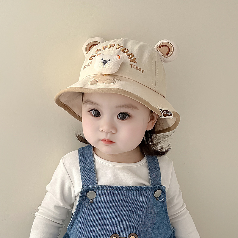 한국 스타일 귀여운 아기 곰 어부 모자 슈퍼 귀여운 봄 가을 남자와 여자 유아 선 스크린 분지 모자스토어 가기