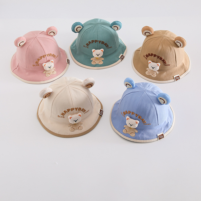 한국 스타일 귀여운 아기 곰 어부 모자 슈퍼 귀여운 봄 가을 남자와 여자 유아 선 스크린 분지 모자