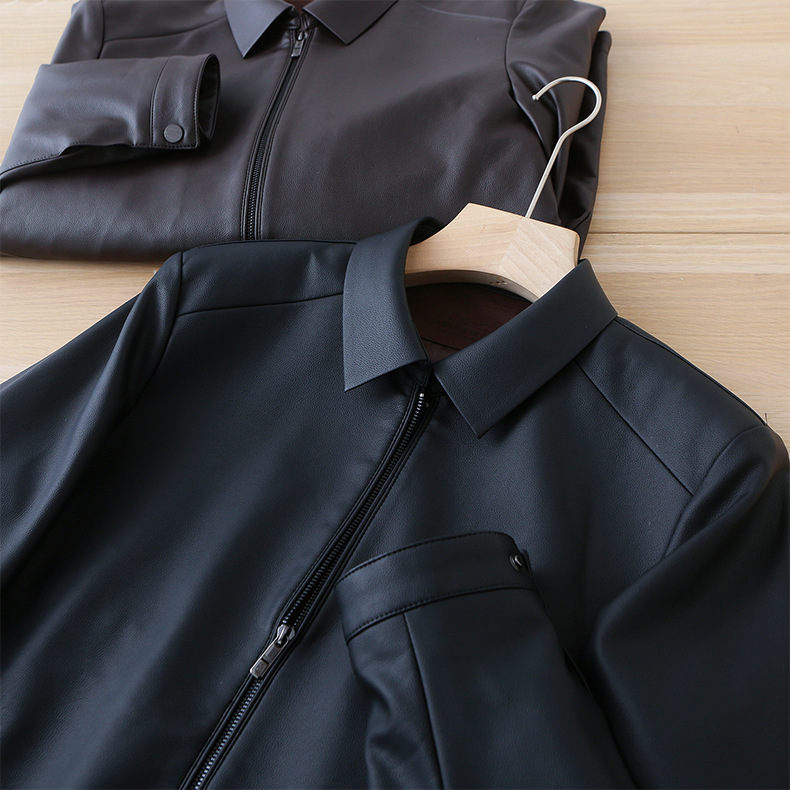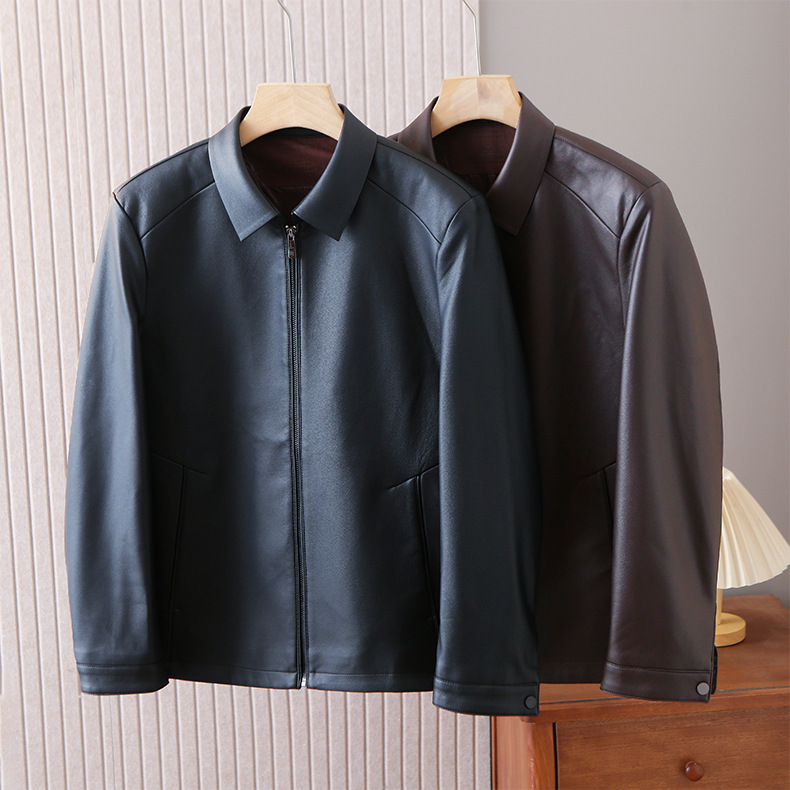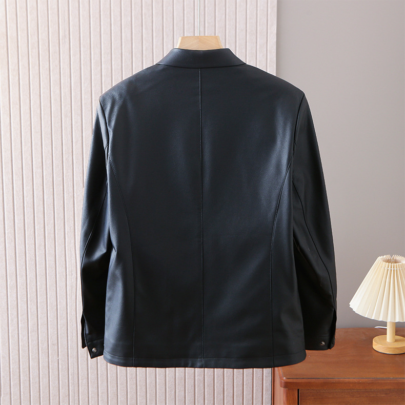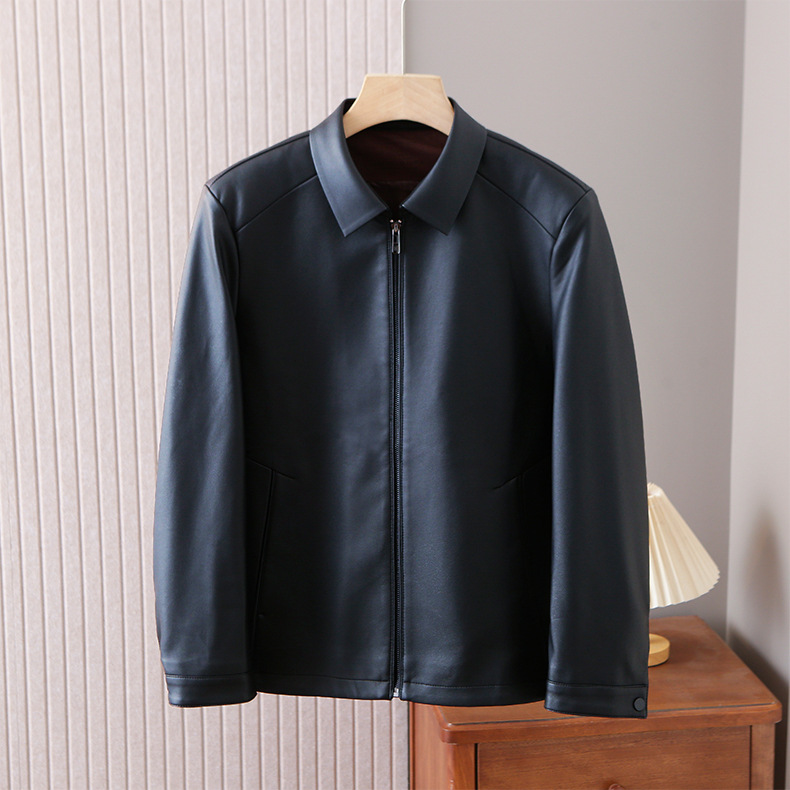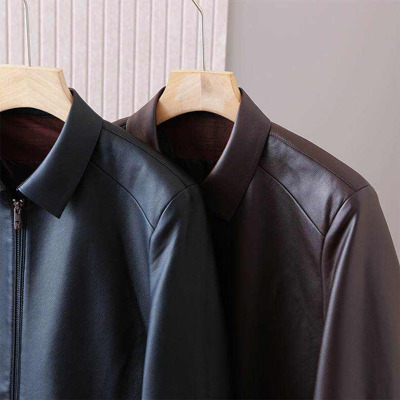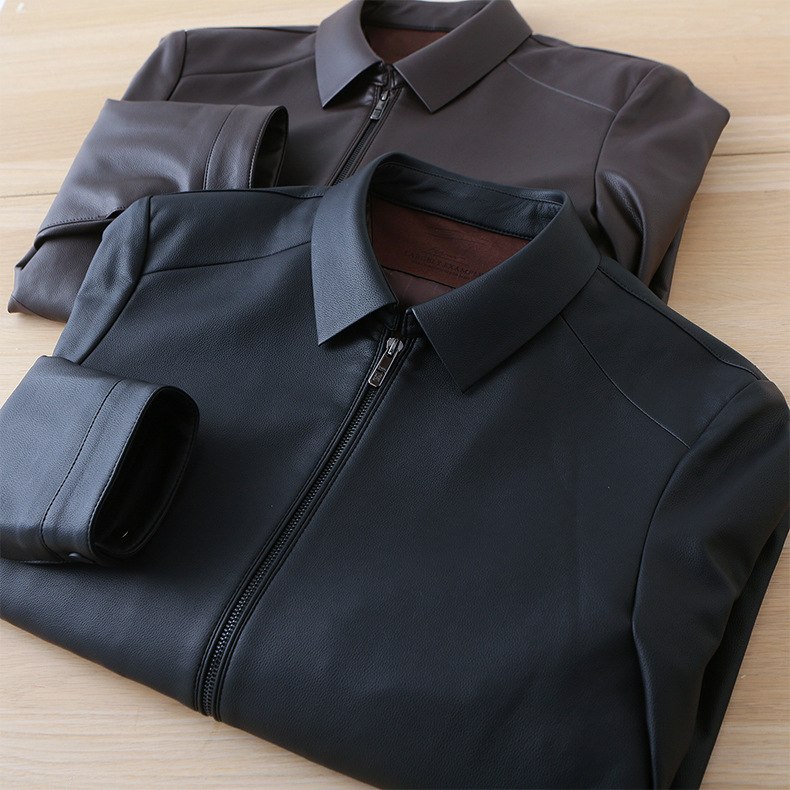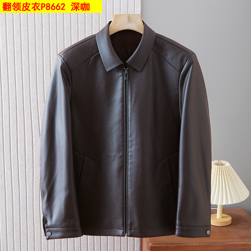 Lei Zong with lapel 가죽 자켓 남성 봄과 가을 오토바이 스타일 비즈니스 캐주얼 양가죽 자켓 재킷 남성 P8662