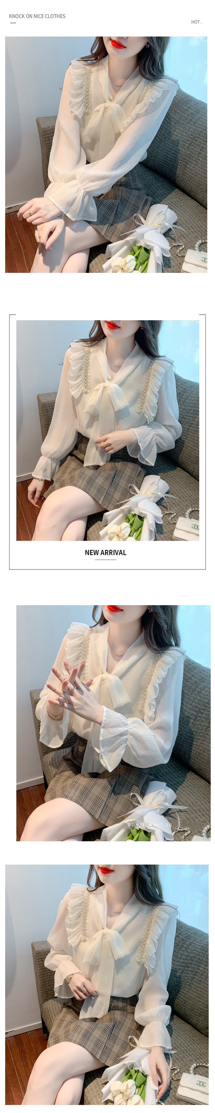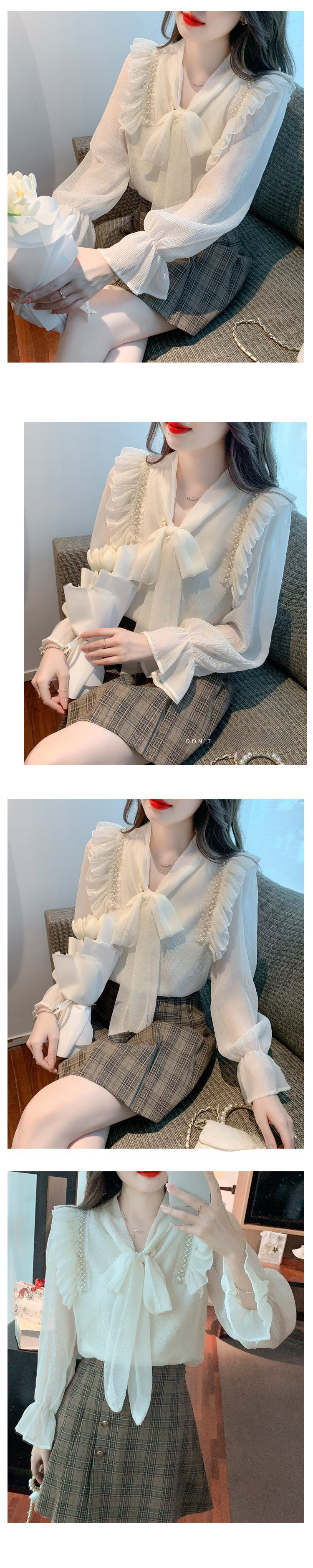 2025 새로운 이른 가을 활 고급 쉬폰 셔츠 여성의 나이를 줄이는 최고의 세련된 아름다운 작은 셔츠스토어 가기