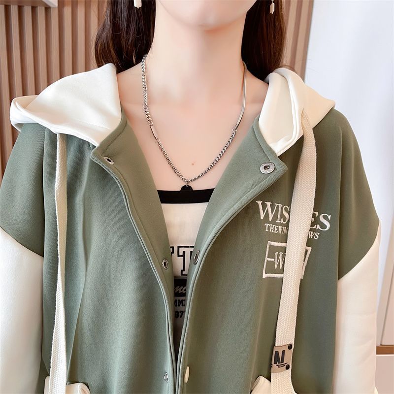 봄과 가을 여자 야구 탑 2025 봄 새로운 도착 대형 어린이 카디건 자수 모자 바이브 스타일 재킷