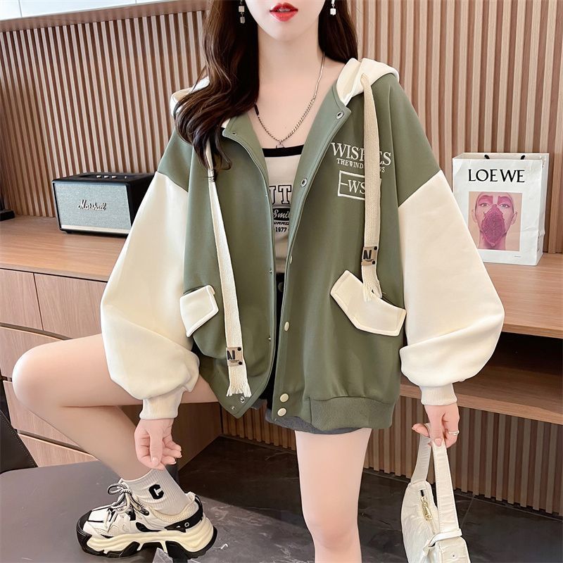 봄과 가을 여자 야구 탑 2025 봄 새로운 도착 대형 어린이 카디건 자수 모자 바이브 스타일 재킷스토어 가기