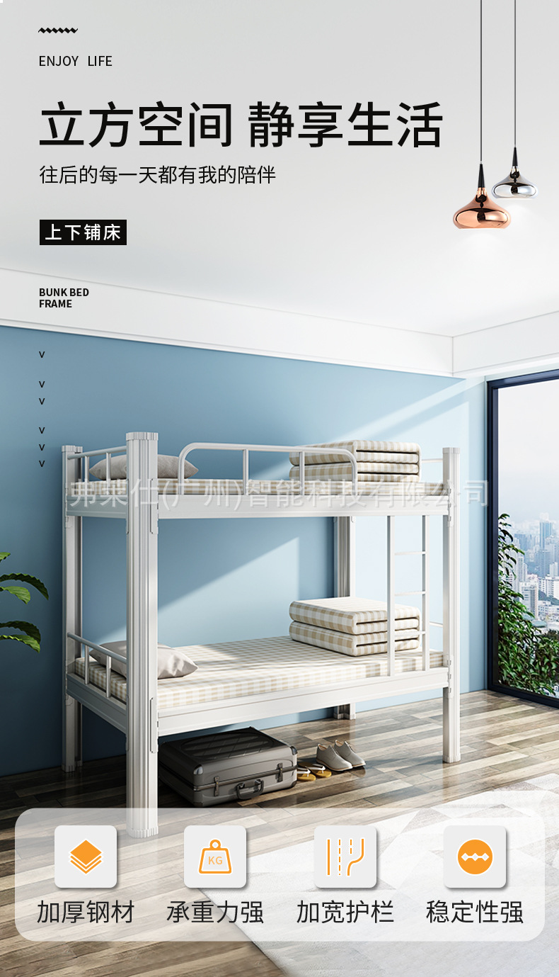 두꺼운 이층침대, 철제 이층침대, 학생용 두꺼운 프로파일 침대, 2인용 직원 싱글 아파트 기숙사 이층침대