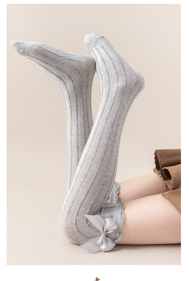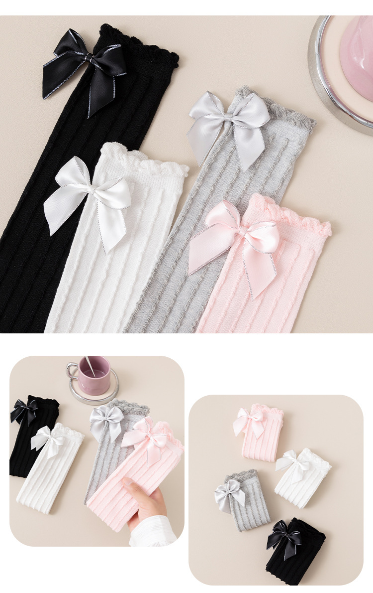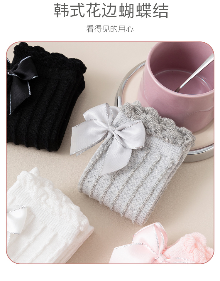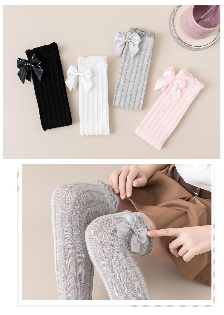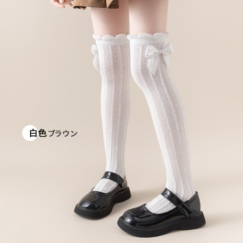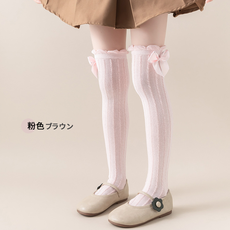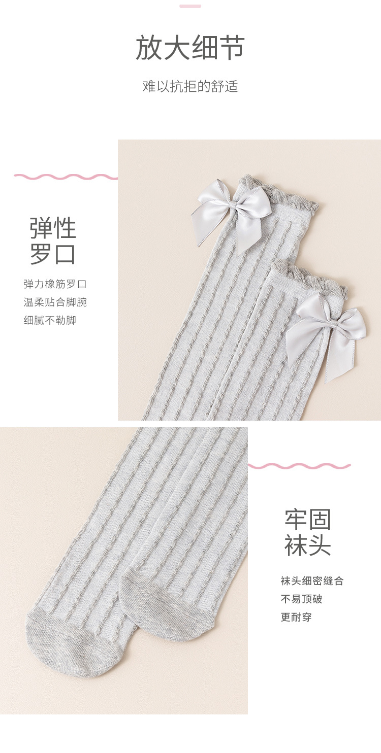 소녀 스타킹 여름 얇은 통기성 메쉬 양말 어린이 학업 무릎 양말 달콤한 활 공주 양말