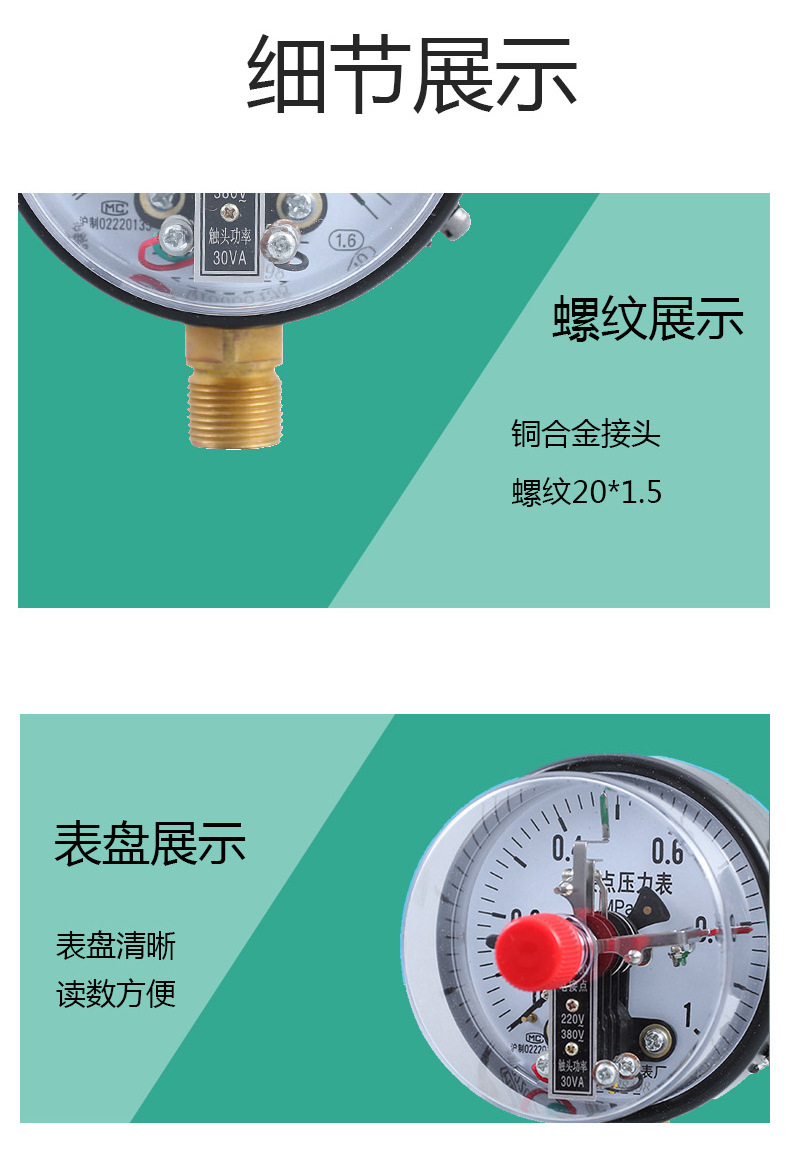 압력 게이지 수압 게이지 YXC100 자기 보조 전기 접촉 압력 게이지 30VA 상한 및 하한 압력 컨트롤러 진공스토어 가기