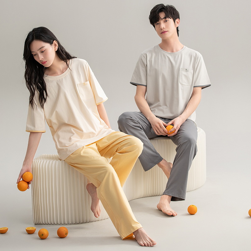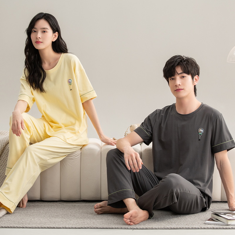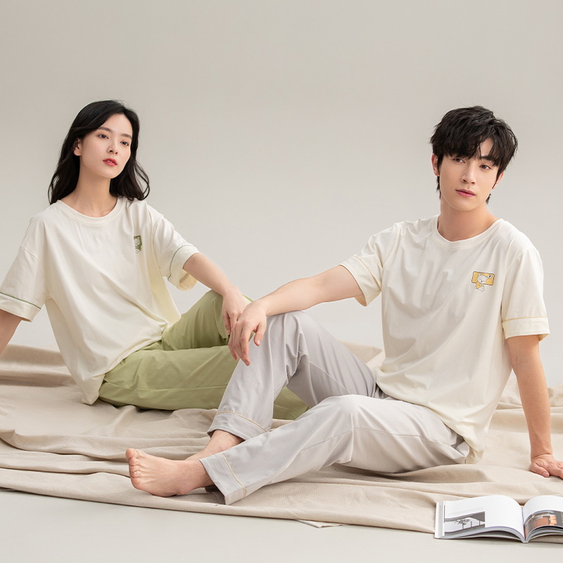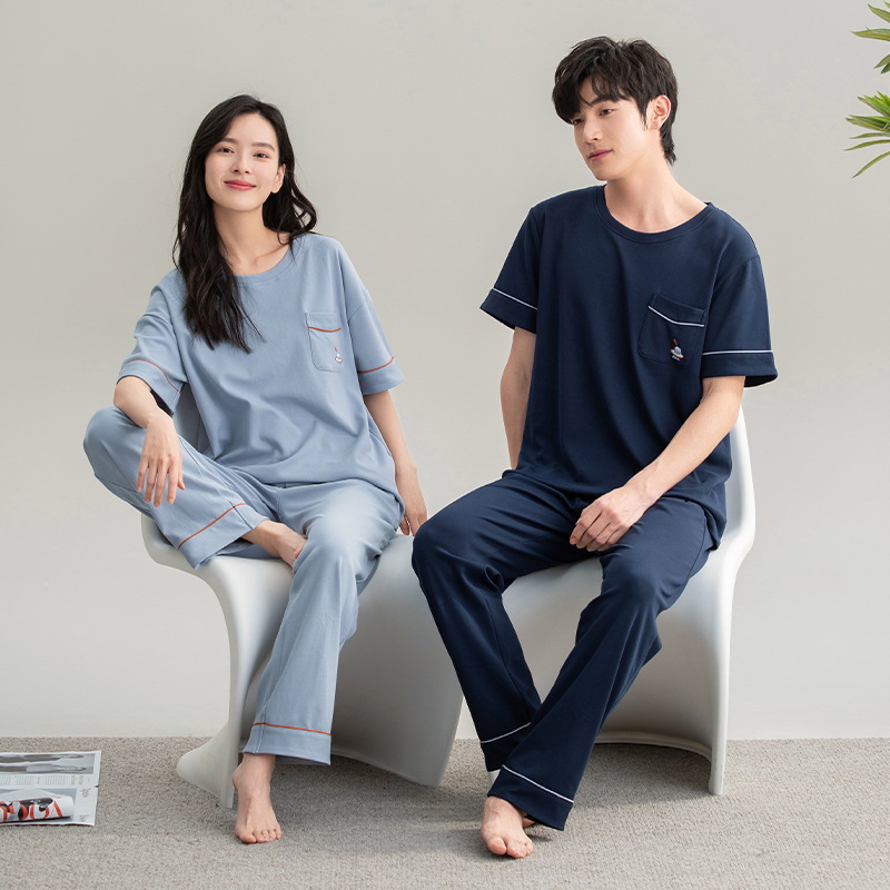 A 급 순수면 항균 파자마 여성 여름 커플 반팔 바지 풀 오버 아우터 순수 면 홈 의류 남성스토어 가기