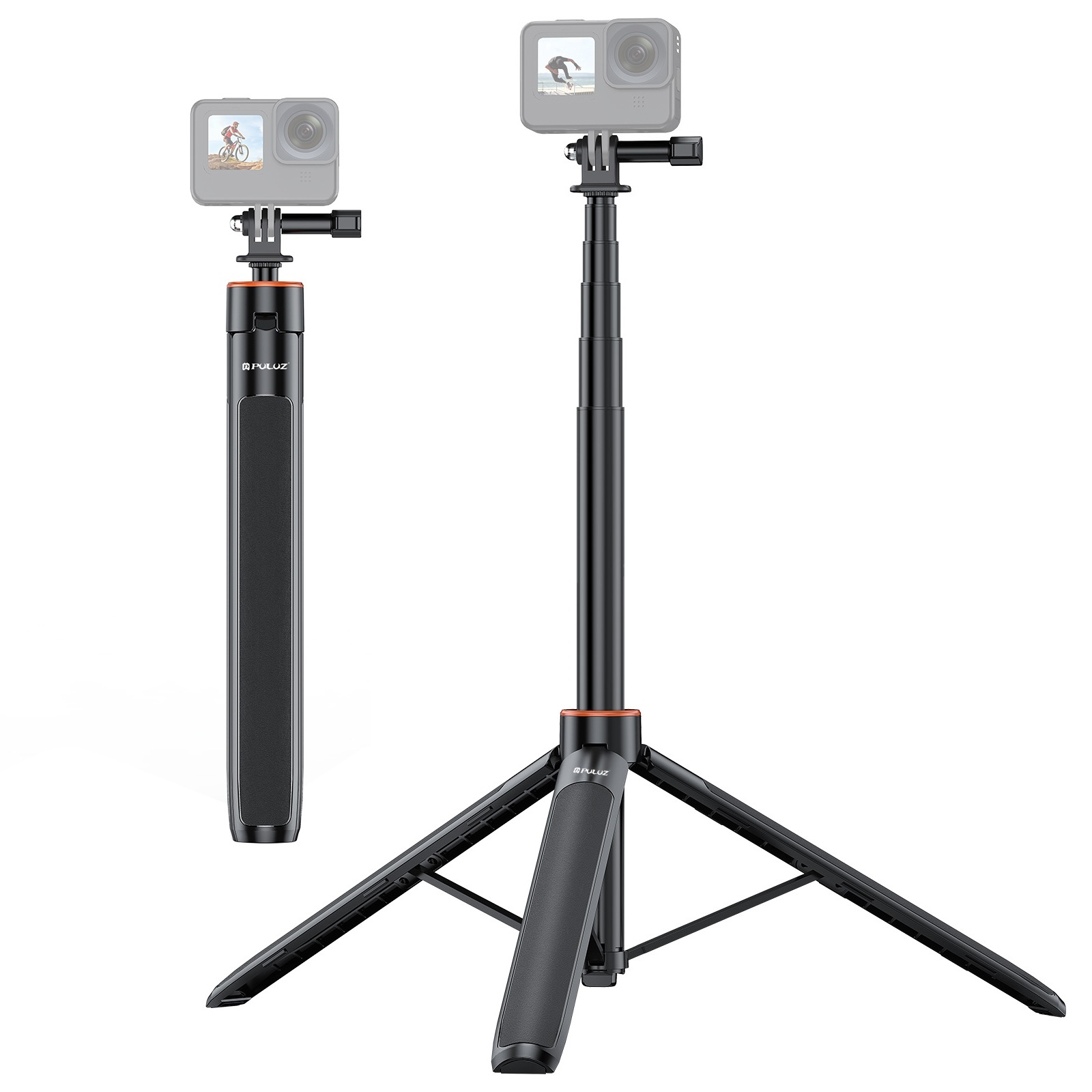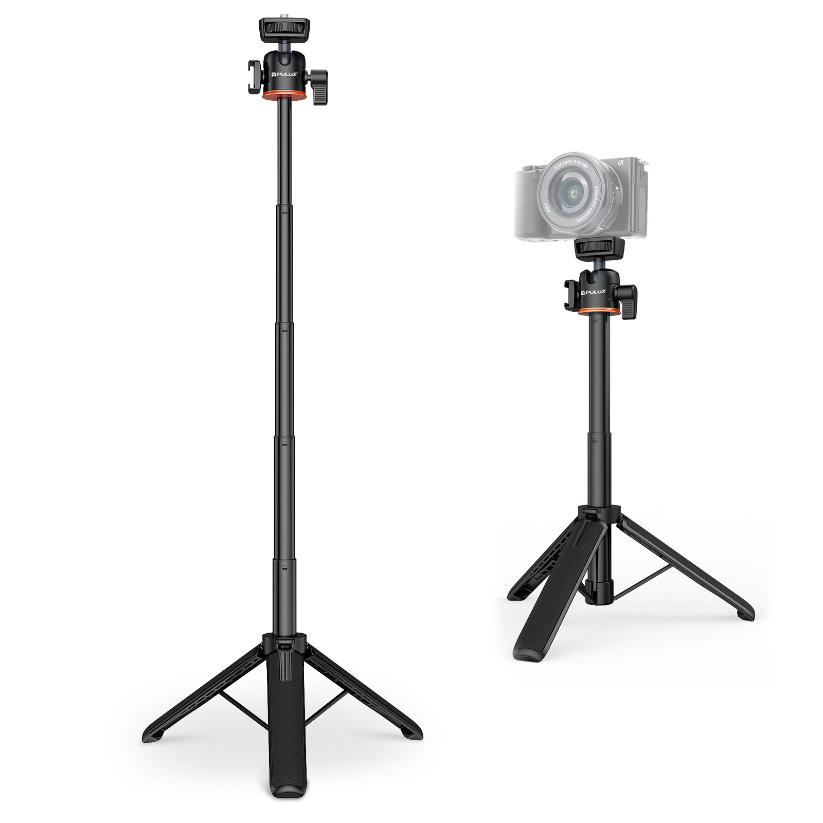PULUZ 1.4m云台三脚架延伸自带手机夹适用直播户外支架 (颜色:黑色)
