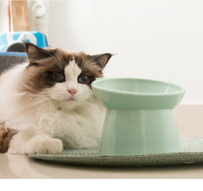 곰 머리 높은 발 고양이 그릇 고양이 먹이 고양이 먹이 그릇 마시는 그릇 대각선 목 보호 애완 동물 그릇 고양이 그릇 도매스토어 가기