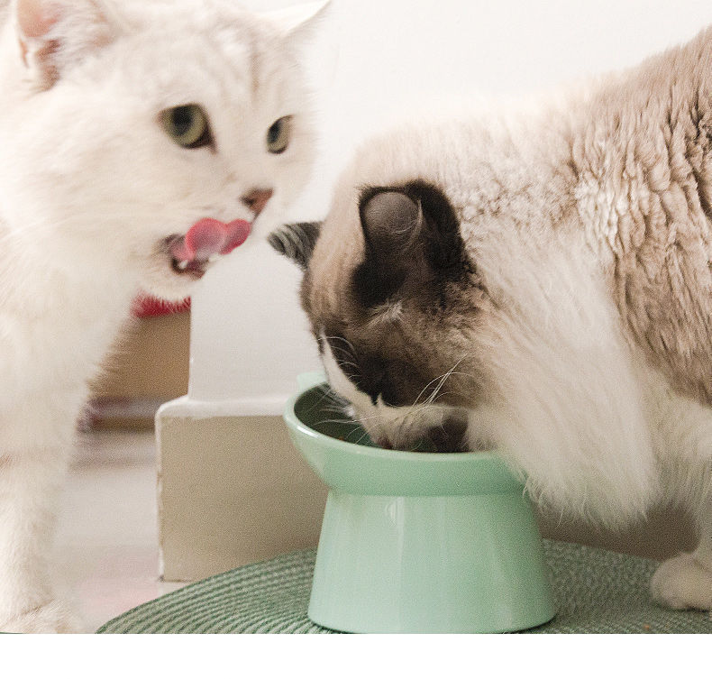 곰 머리 높은 발 고양이 그릇 고양이 먹이 고양이 먹이 그릇 마시는 그릇 대각선 목 보호 애완 동물 그릇 고양이 그릇 도매
