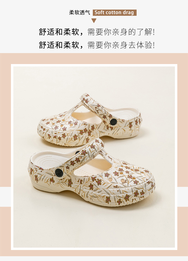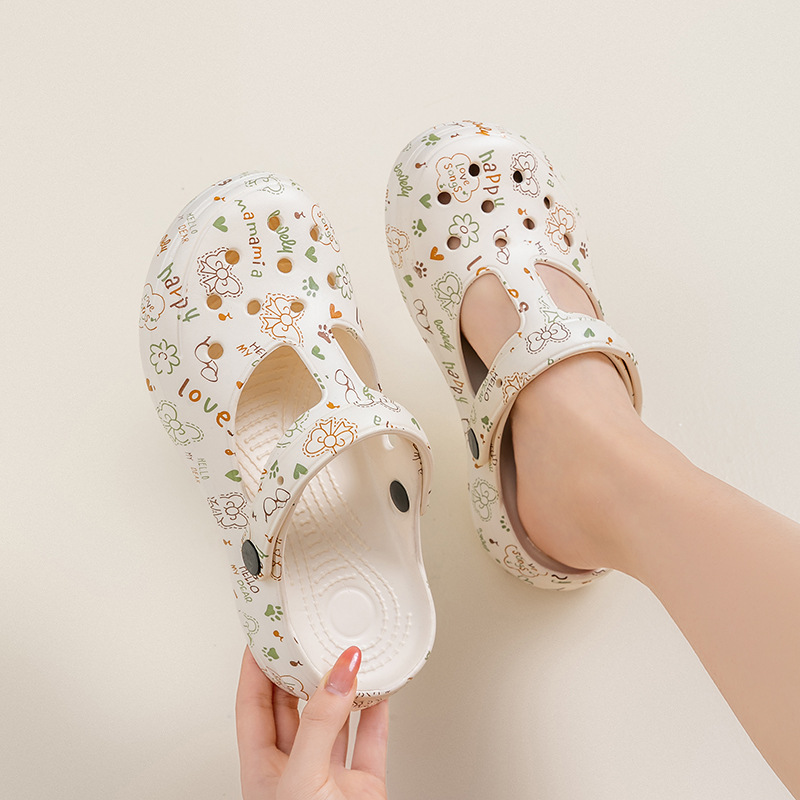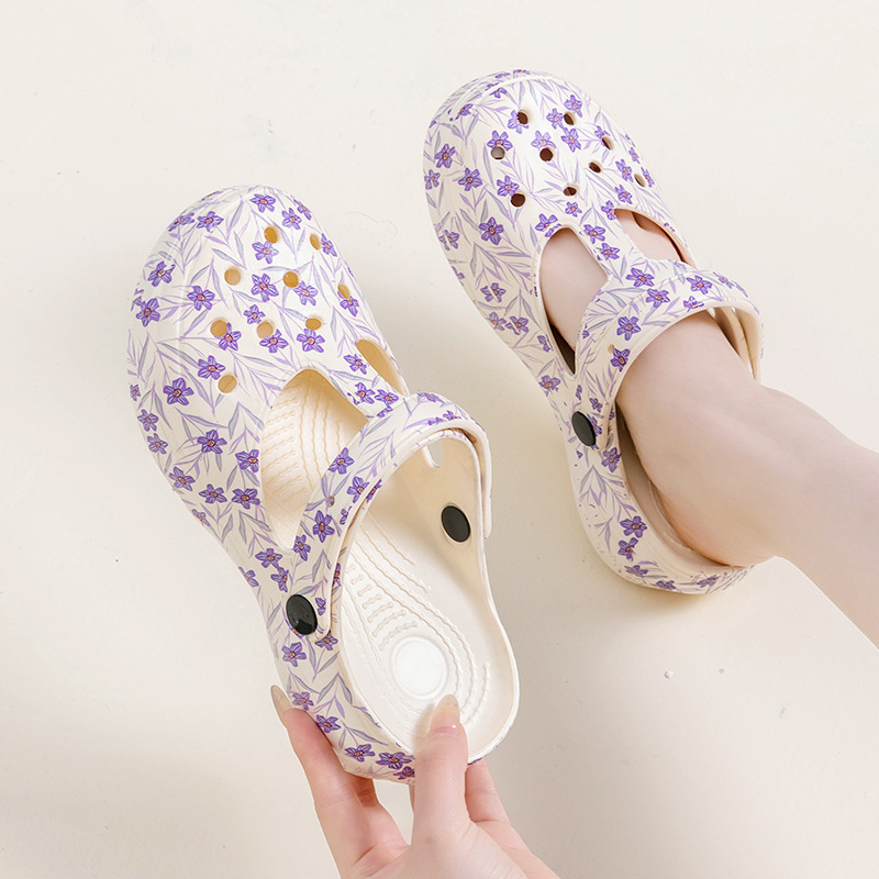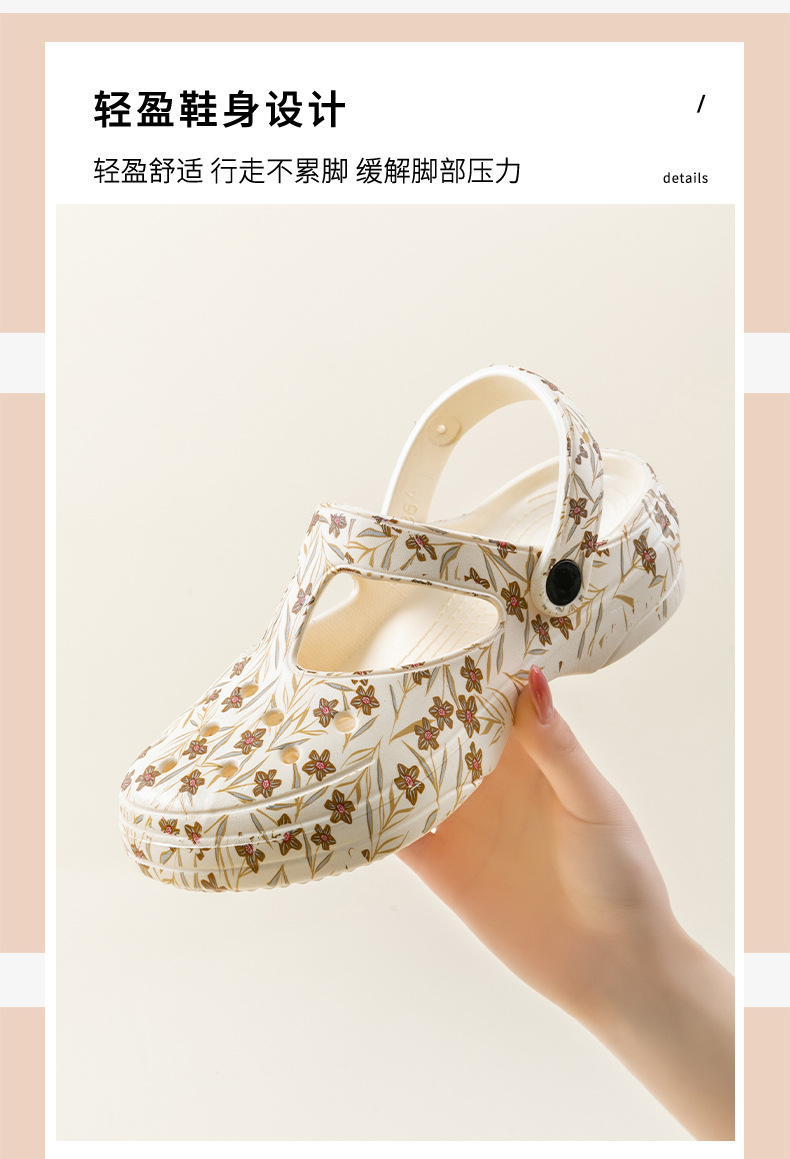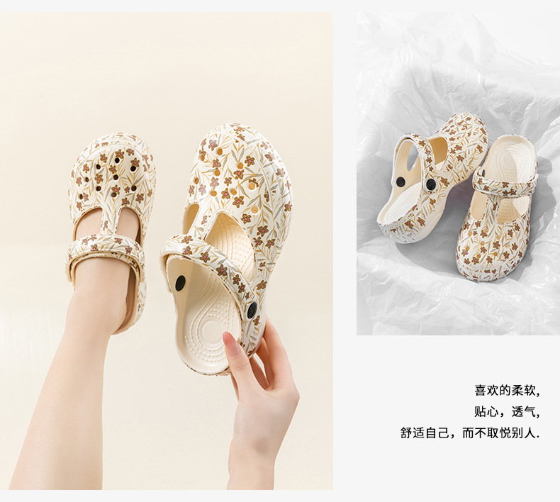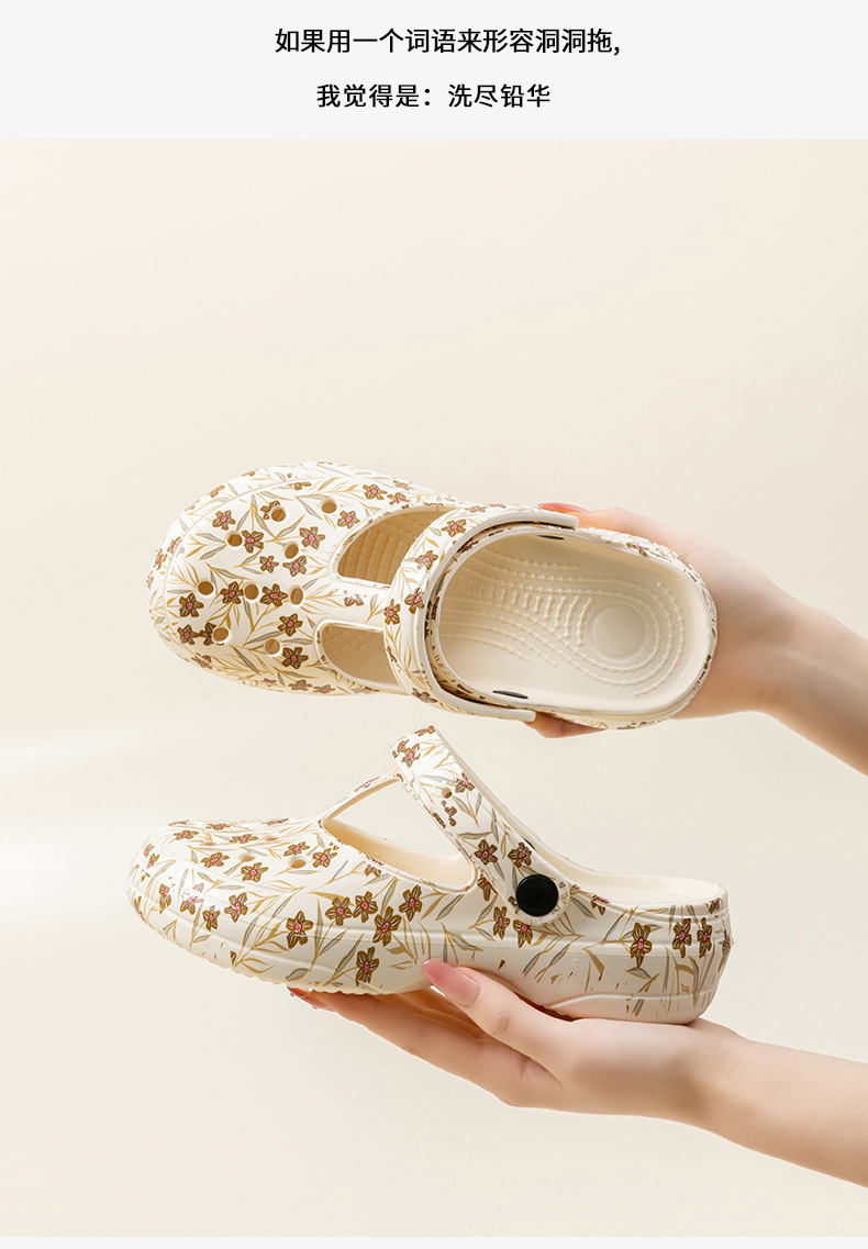 초경량 Baotou 홀 신발 여성 여름 새로운 의상 유행 인쇄 두꺼운 밑바닥 미끄럼 방지 비치 가든 샌들스토어 가기