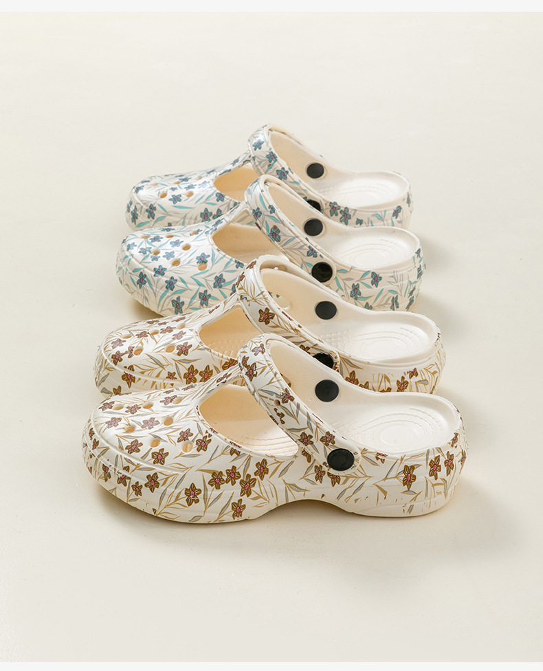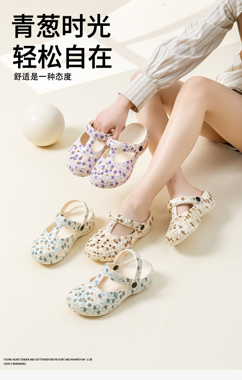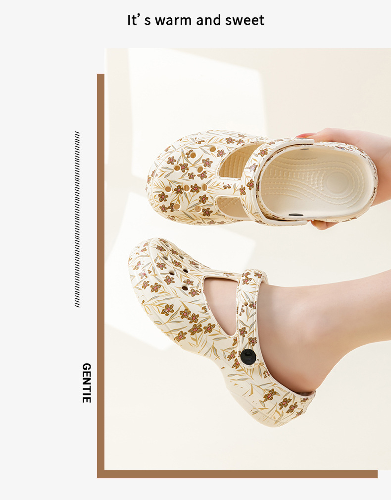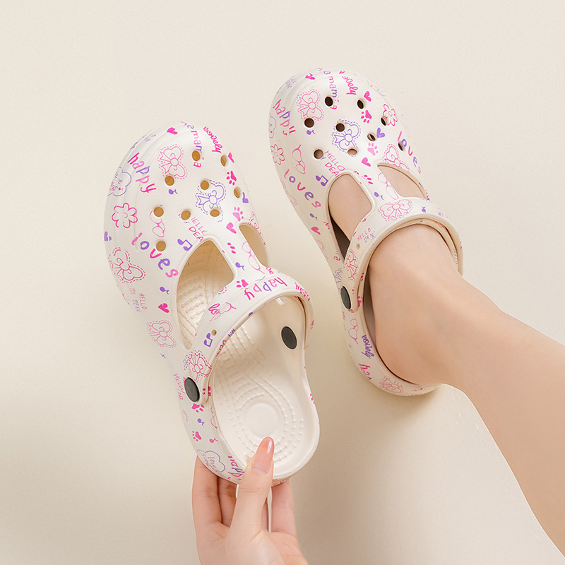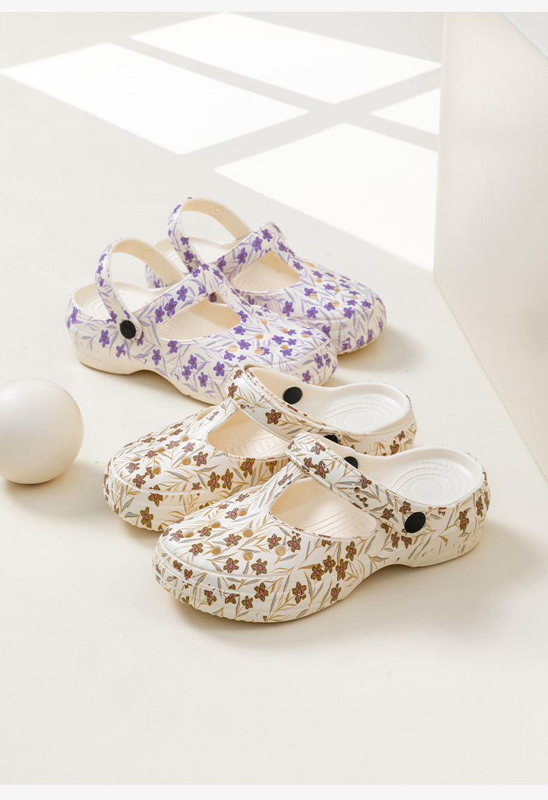 초경량 Baotou 홀 신발 여성 여름 새로운 의상 유행 인쇄 두꺼운 밑바닥 미끄럼 방지 비치 가든 샌들스토어 가기