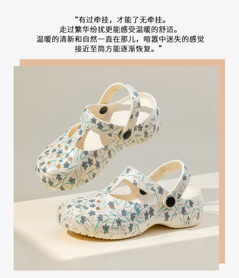 초경량 Baotou 홀 신발 여성 여름 새로운 의상 유행 인쇄 두꺼운 밑바닥 미끄럼 방지 비치 가든 샌들