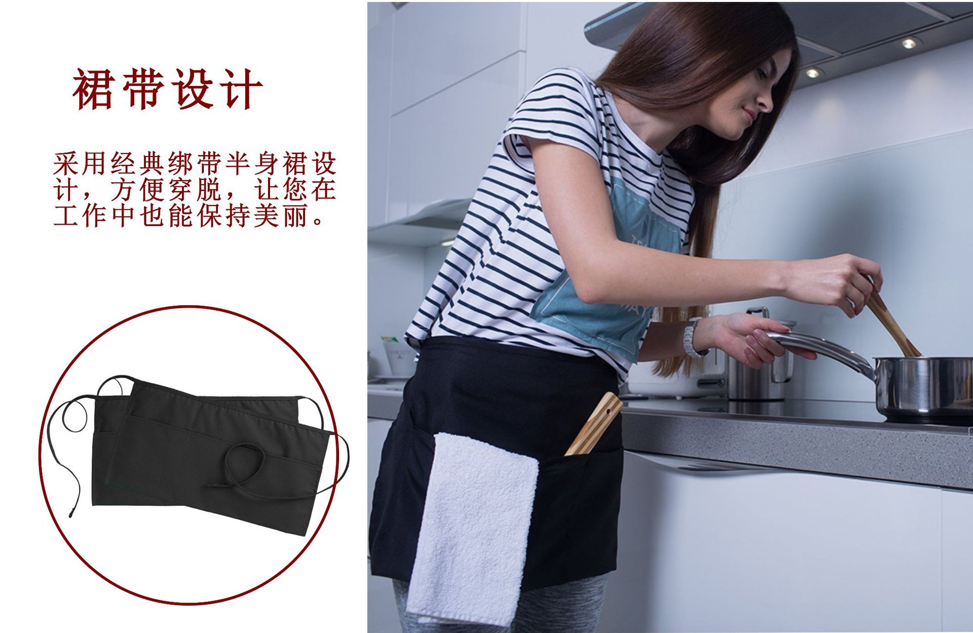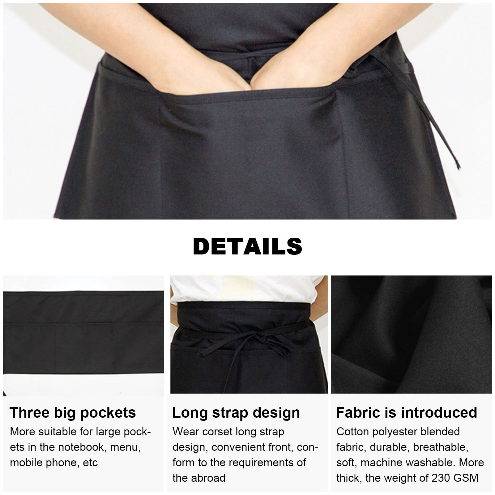 반바지형 앞치마 카페 레스토랑 웨이터 작업용 로고 공장 도매 내마모성 민소매 오염방지